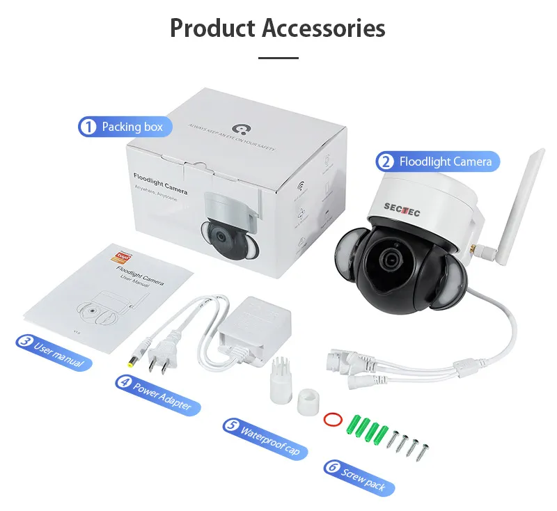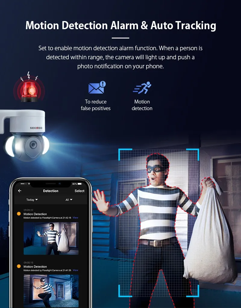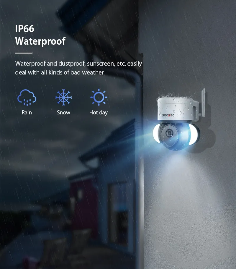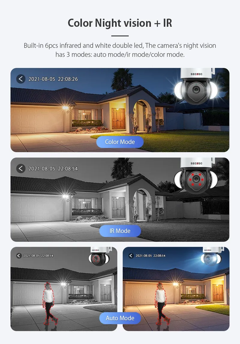 Built with ABS plastic and operating in temperatures from -20°C to 50°C, this rugged camera performs well in all weather conditions. It features full-color night vision with selectable 3MP, 4MP, or 5MP resolution options, giving you crystal-clear images even in low light. The floodlight assists night vision for added clarity, making it ideal for 24/7 surveillance.