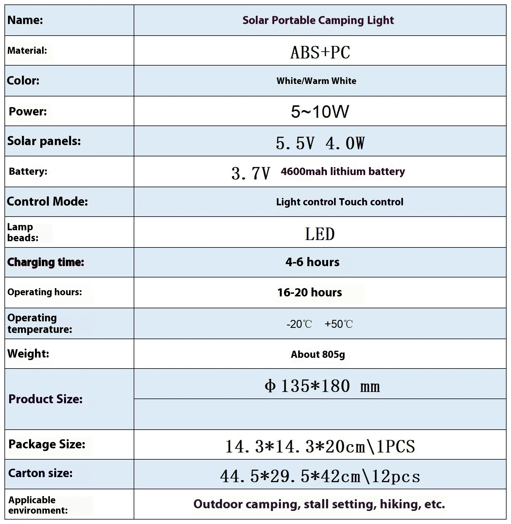 Featuring a rechargeable power system with a rated output of 5–10W, this light ensures reliable performance with long-term efficiency. The extended lifespan of up to 50,000 hours reduces maintenance needs, while the compact size allows easy handling, carrying, or placement in multiple environments.