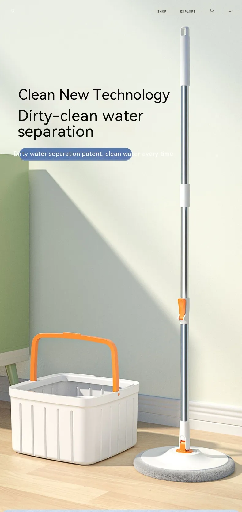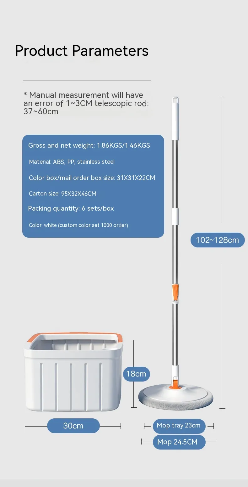 Crafted from 100% new materials, including durable ABS, PP plastic, and stainless steel, this mop features a rotating decontamination plate and a smart water separation system that keeps clean and dirty water apart. The included bucket is compact yet efficient, and the mop head provides full 360° rotation for reaching under furniture, into corners, and along wall edges with ease. Two reusable microfiber mop pads are included, making it ideal for homes with kids, pets, or heavy foot traffic.