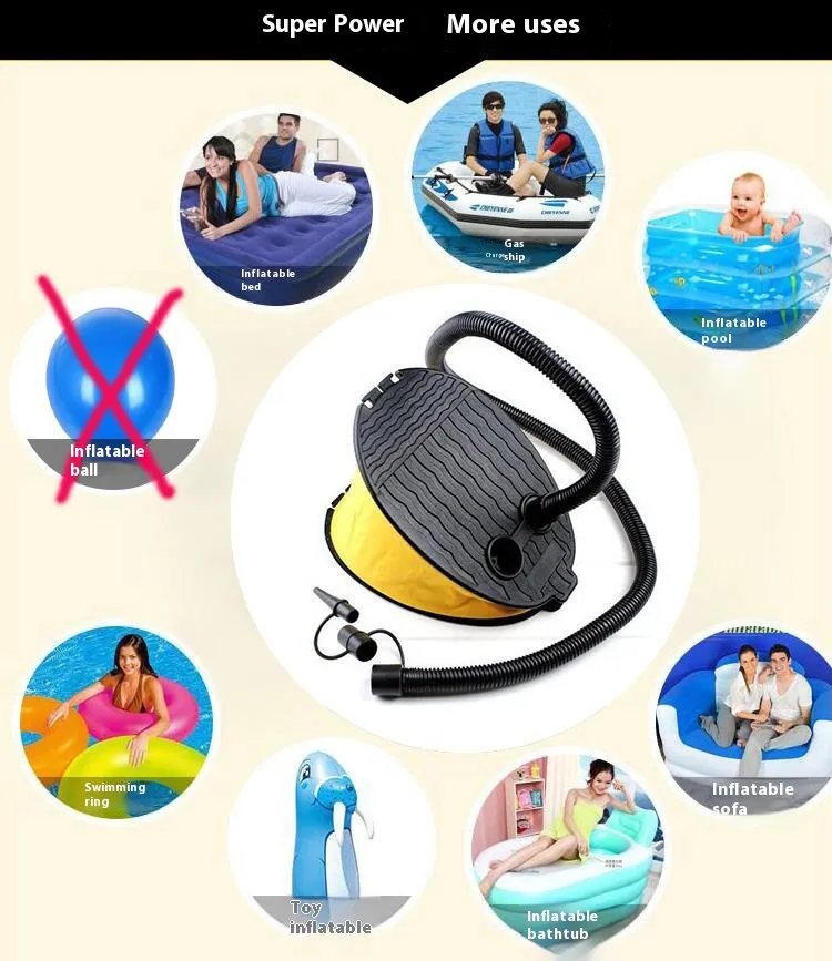 Compact and portable, this pedal pump is easy to store and carry in your car trunk, garage, or camping gear. Its ergonomic design ensures comfortable operation while delivering high performance without bulky machinery. Ideal for outdoor enthusiasts, cyclists, and anyone needing a versatile, reliable air pump.