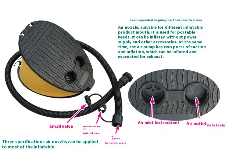 Specifications: 3 liters foot pump (23*15.5*4cm),5 liters foot pump (28*18.5 * 4cm) Video