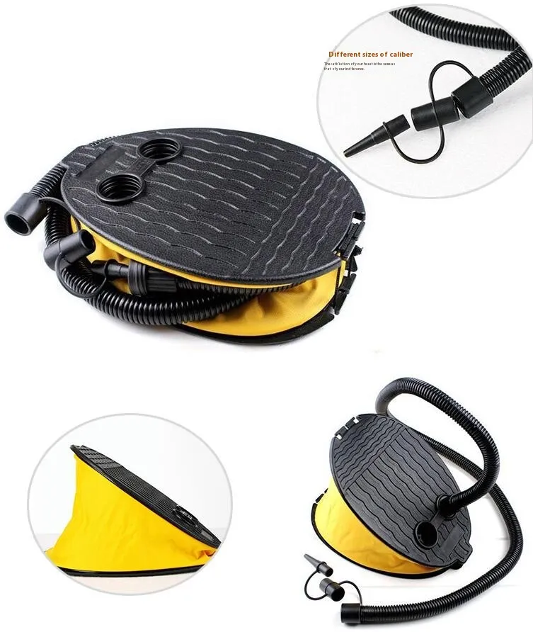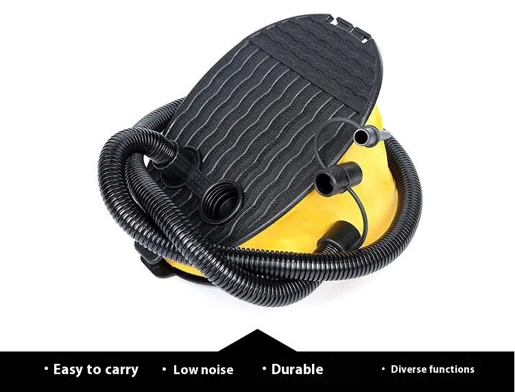 Easily inflate tires, sports balls, and other inflatables with this hands-free pedal air pump. Designed for efficiency and convenience, it allows you to operate the pump with your foot, freeing your hands for stability and control. Its bright yellow design ensures visibility during outdoor use, making it perfect for cycling trips, car maintenance, or recreational activities.
