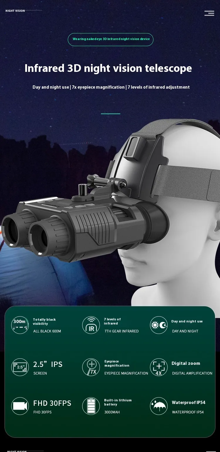 security professionals, outdoor adventurers, and nighttime explorers. Designed in a head-mounted, helmet-style configuration, these night