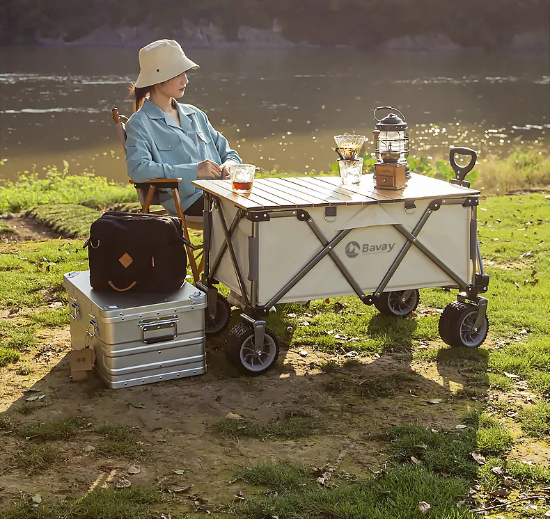 Its foldable design ensures convenient storage and transport when not in use, making it a reliable companion for outdoor excursions or everyday errands. Compact, practical, and rugged—this trolley is a must-have for anyone who enjoys outdoor living.