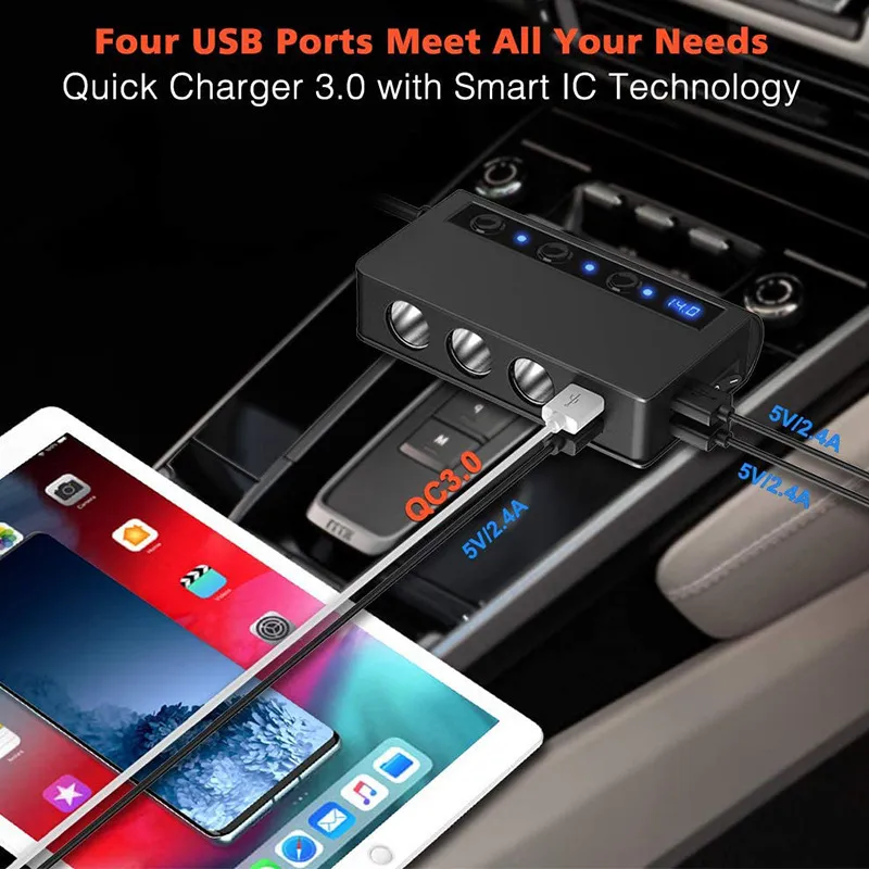 High Power 3-in-1 Car Cigarette Lighter Splitter with QC3.0 Charger