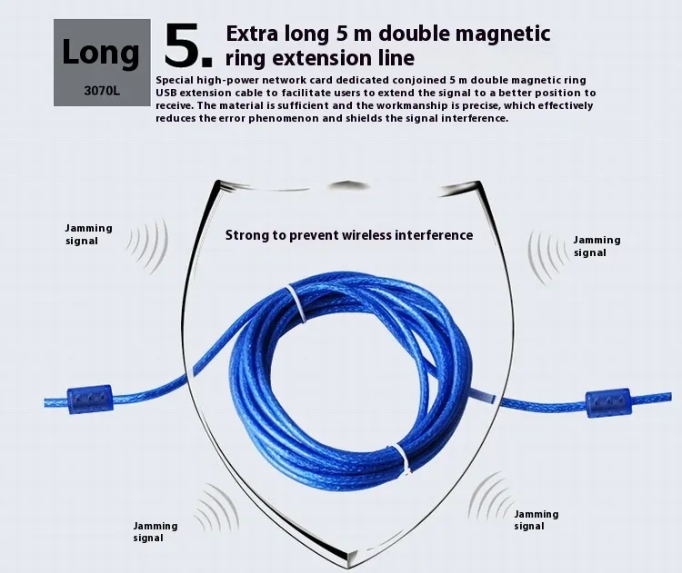 Boost your internet connection with the High Power USB Wireless Network Card, designed for desktop computers and laptops that need stronger, more stable WiFi signals. Featuring a high-performance 3070 chip, this device delivers remote signal enhancement, making it ideal for users dealing with weak or inconsistent network connections.