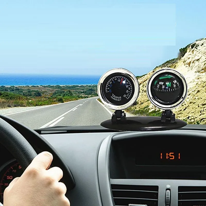 High-Precision Car Compass with Thermometer, Luminous & Waterproof