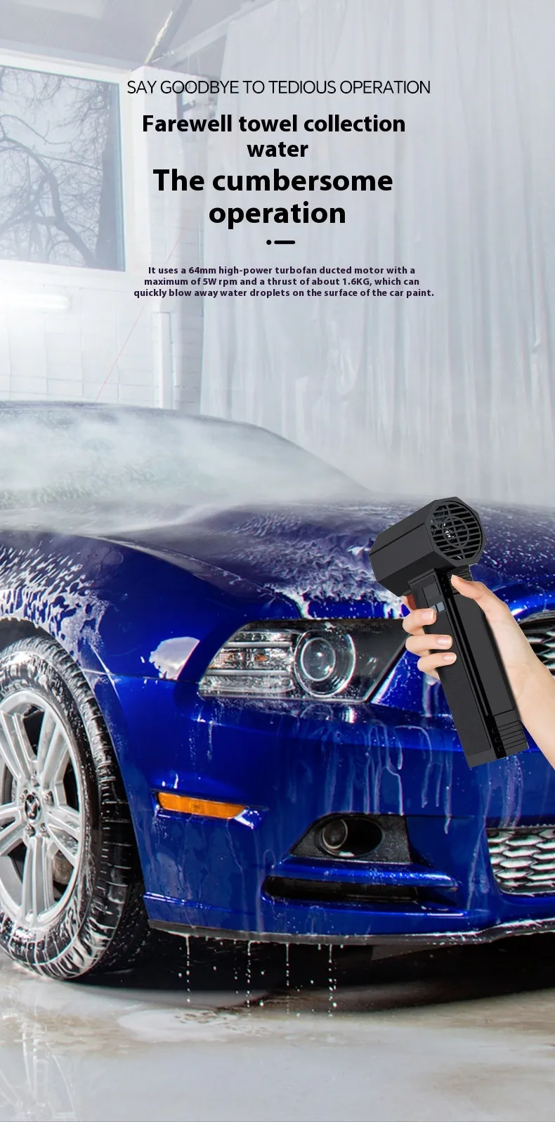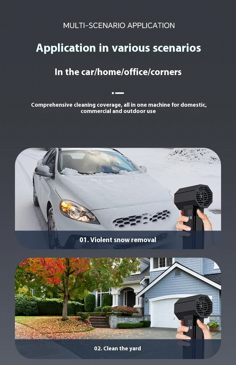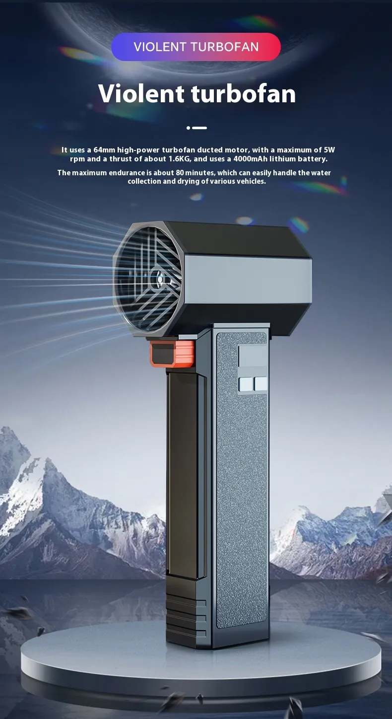 Experience powerful and efficient car drying with this Ducted High-Speed Turbofan Electric Blower. Designed specifically for car wash and outdoor cleaning, this 14.8V cordless dust blower delivers intense air pressure to remove dust, water, and debris from every corner of your vehicle—fast and effortlessly.