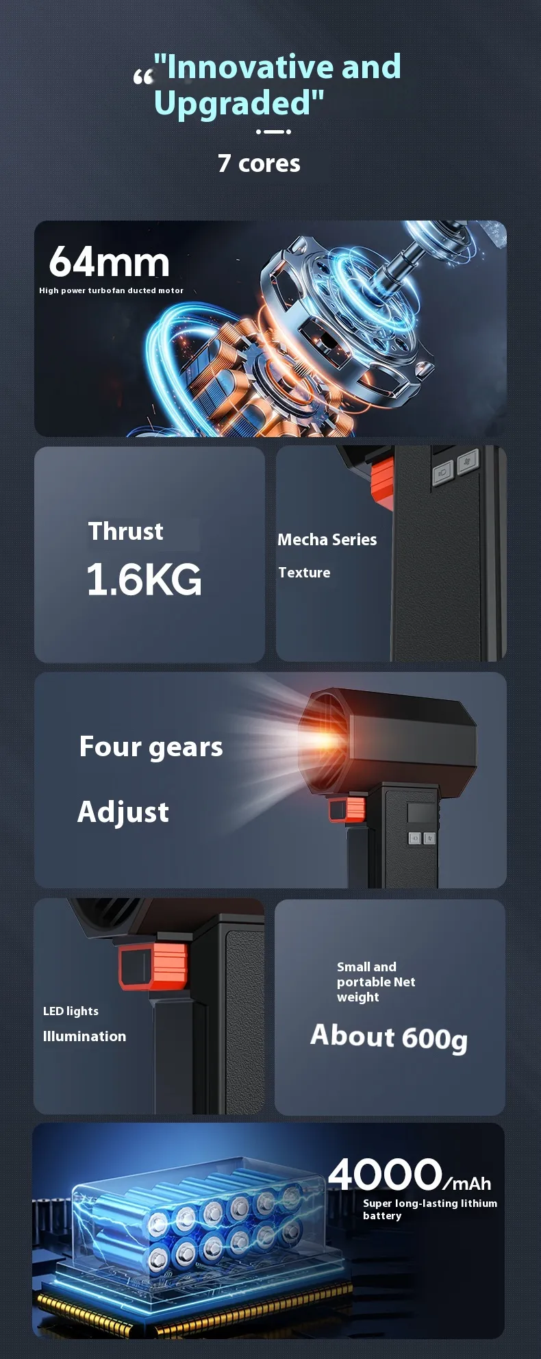 High-Speed Electric Car Wash Turbofan – 14.8V Cordless Dust Blower