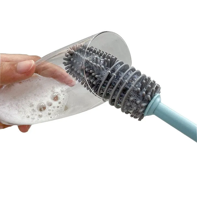 The Household Silicone Cup Brush features a thickened long handle that gives you a comfortable, firm grip, perfect for reaching deep into tall bottles or narrow cups. Its hanging hole design makes storage simple and helps keep your cleaning tools dry and organized. The high-quality silicone construction resists mildew and bacteria, making it ideal for daily use.