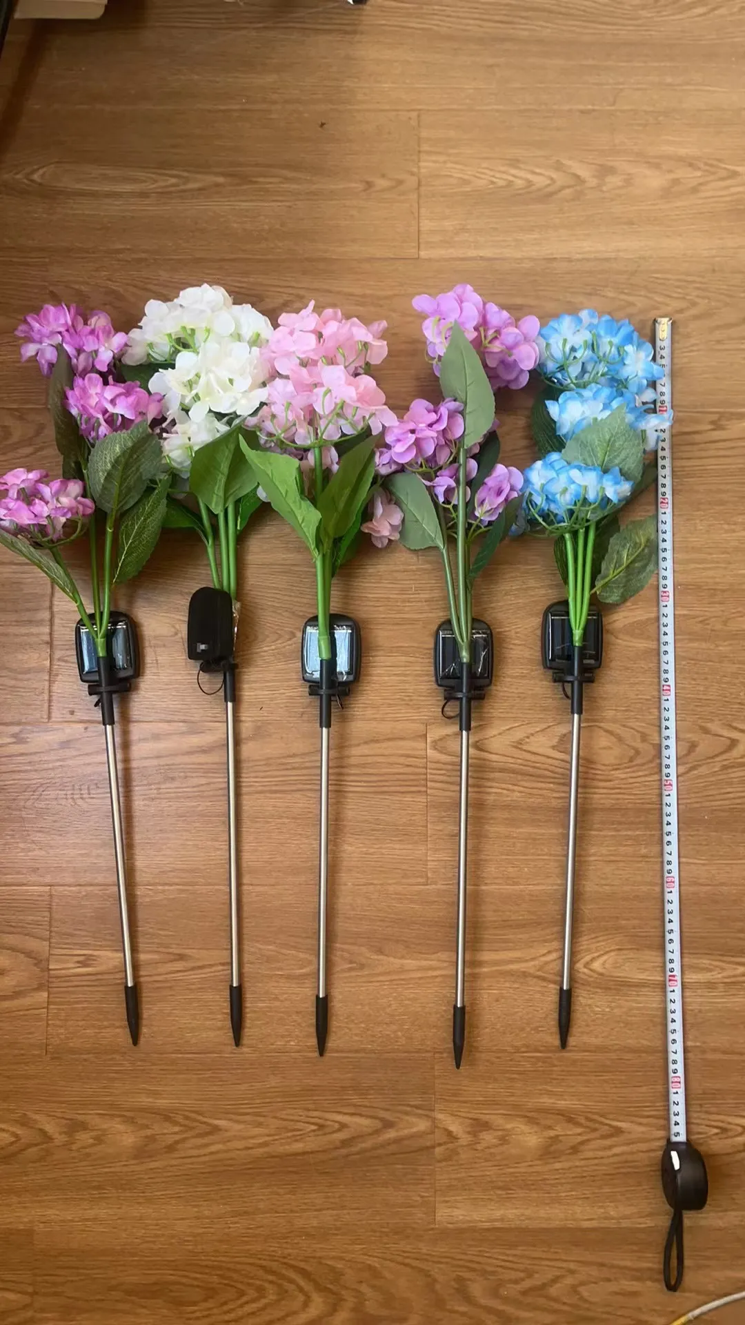 Add elegance and charm to your garden, courtyard, or patio with this Solar-Powered Hydrangea Lamp. Available in purple, blue, white, and pink, it features realistic embroidery flowers crafted from PVC, stainless steel, and raw silk, combining beauty with durability. Its decorative design enhances the ambiance of any outdoor space while providing gentle illumination.