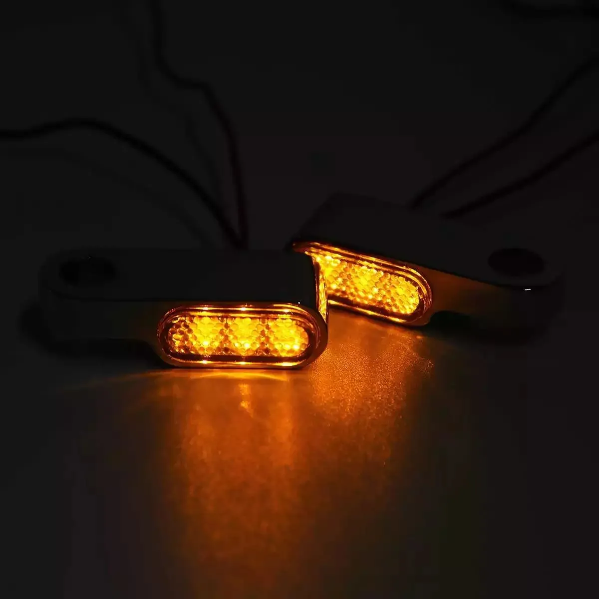 Featuring bright amber LED illumination, these turn signals maximize visibility for safer riding day and night. Their 12V DC power ensures energy-efficient operation while providing a sharp, noticeable light that enhances your motorcycle’s appearance and ensures you’re seen by other drivers in traffic.