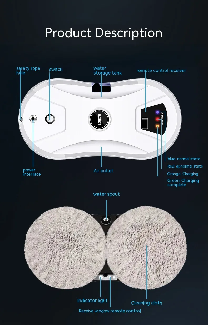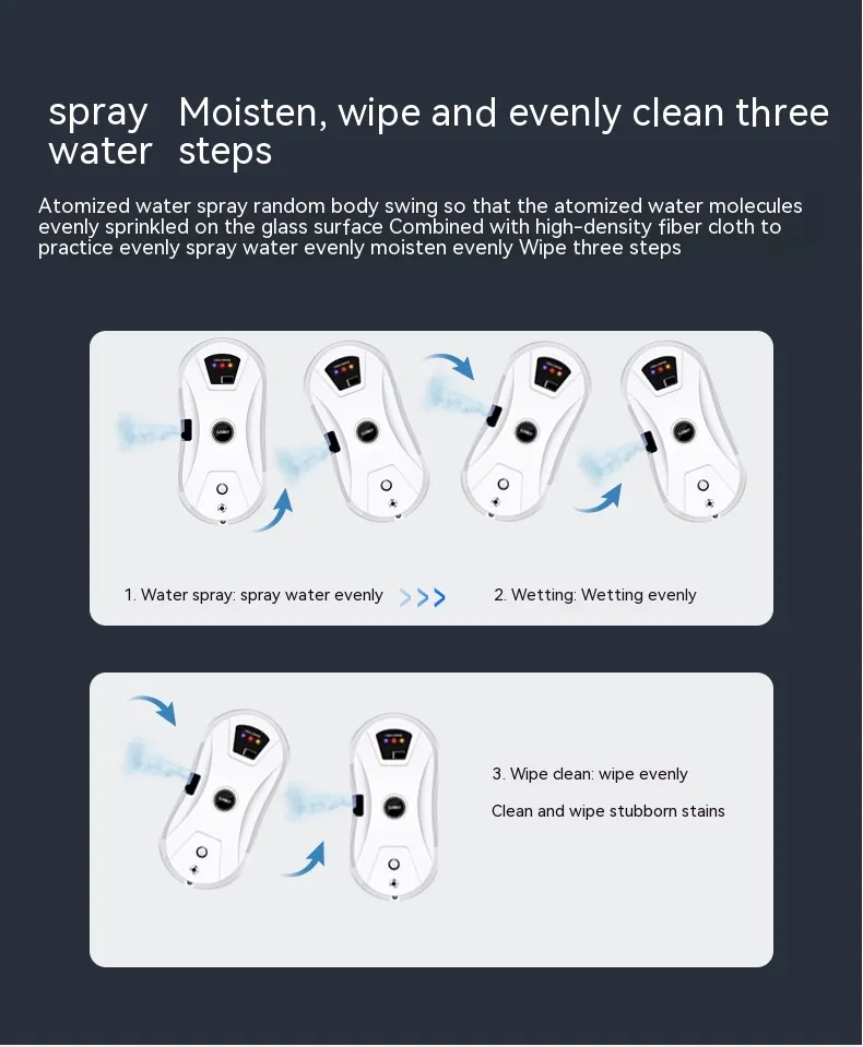 Whether you're at home or in the office, the Intelligent Water Spray Window Cleaning Robot provides convenience and efficiency in cleaning all types of glass surfaces. Say goodbye to tedious window cleaning and let this smart device handle it for you!
