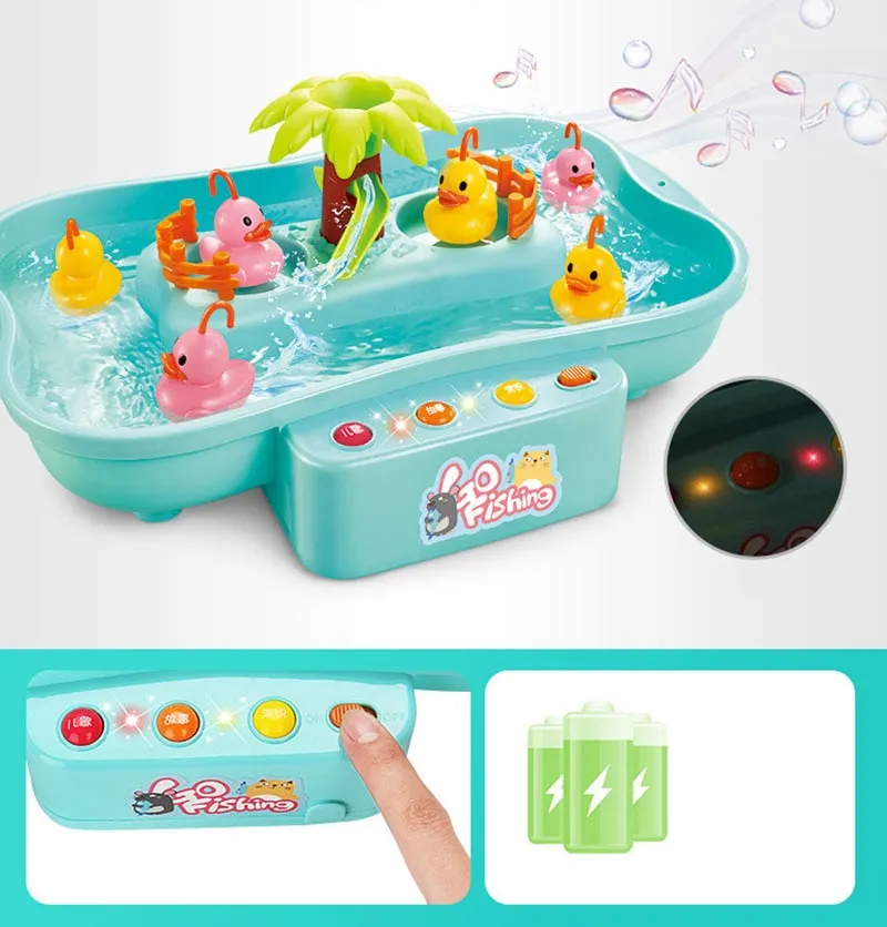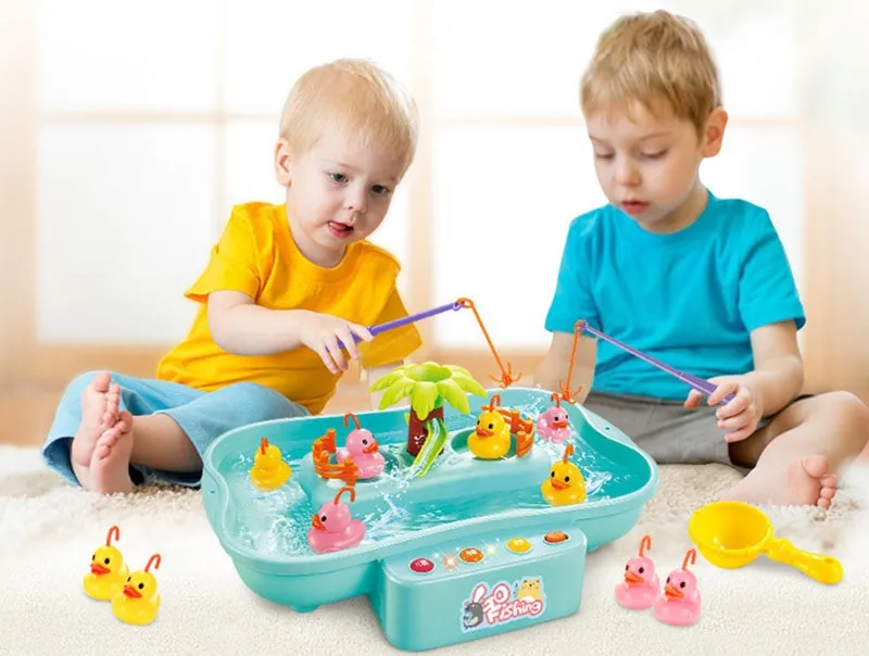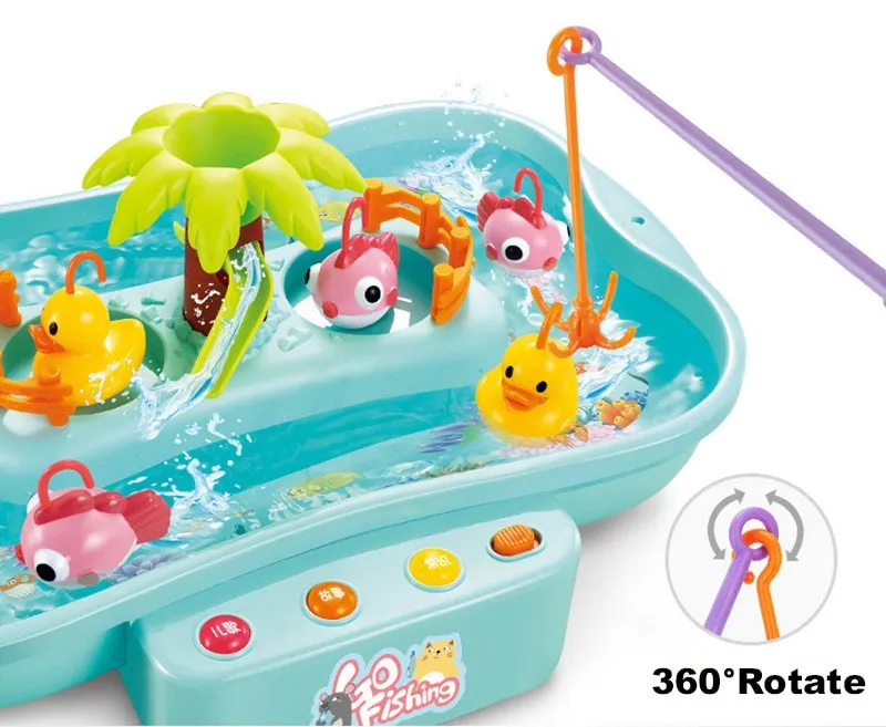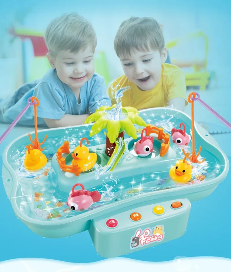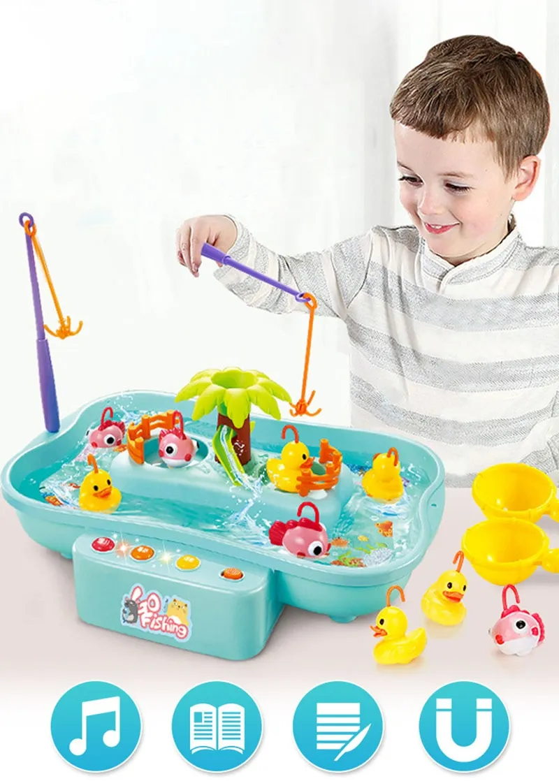 Introduce your little ones to the Interactive Rotating Fishing Game for Kids, a fun and engaging table game that enhances hand-eye coordination and promotes quality bonding time between parents and children. Featuring colorful rotating fish, floating ducks, and easy-to-use fishing rods, this classic fishing game is ideal for toddlers and young kids who love active play with lights and sound effects.