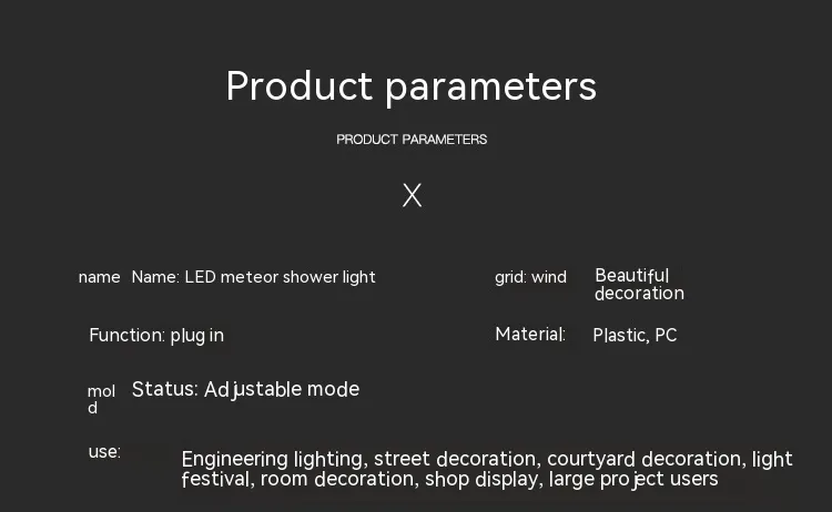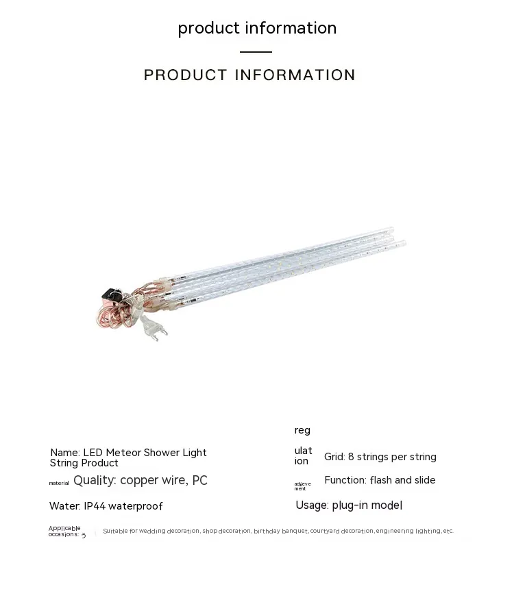 Power supply: European standard round plug 50cm patch meteor shower 8 pieces suit, American Standard flat plug 50cm patch meteor shower 8