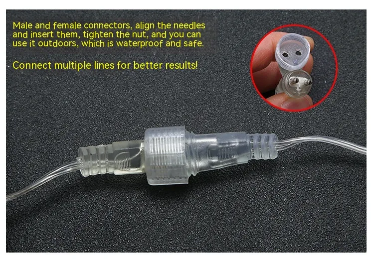 Easy to install and energy-efficient, these lights operate at 7V input voltage while creating a dazzling effect that enhances your outdoor celebrations. Each set includes 8 patch meteor lights, making decorating large trees, roofs, or pathways effortless and visually spectacular. Perfect for creating a festive, welcoming atmosphere during the holiday season.