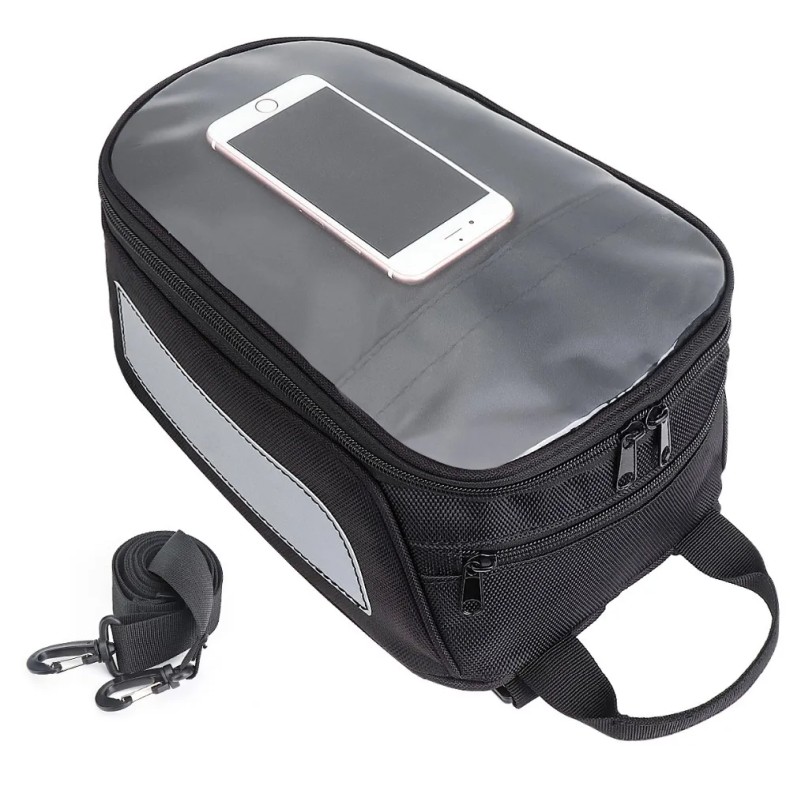 Equipped with four powerful magnets, it attaches securely to your motorcycle fuel tank without slipping. The transparent top pocket makes it easy to view your phone or GPS, while reflective side strips provide added visibility for safer night rides.