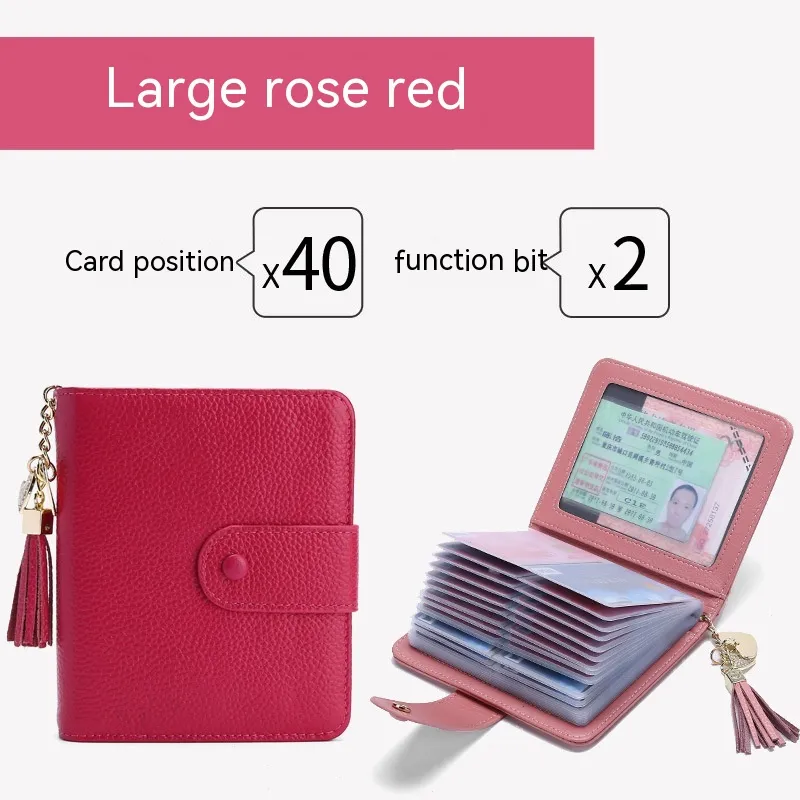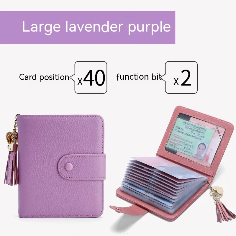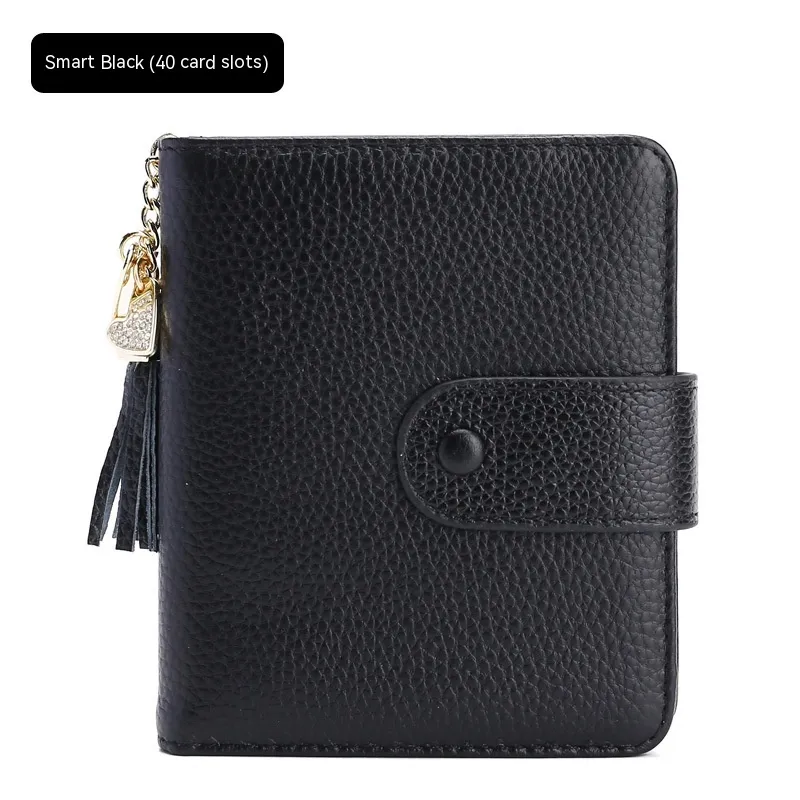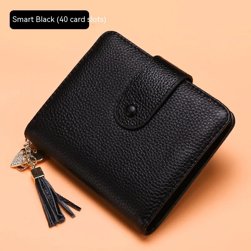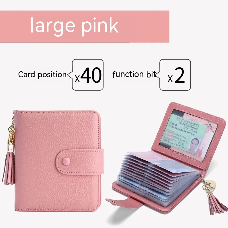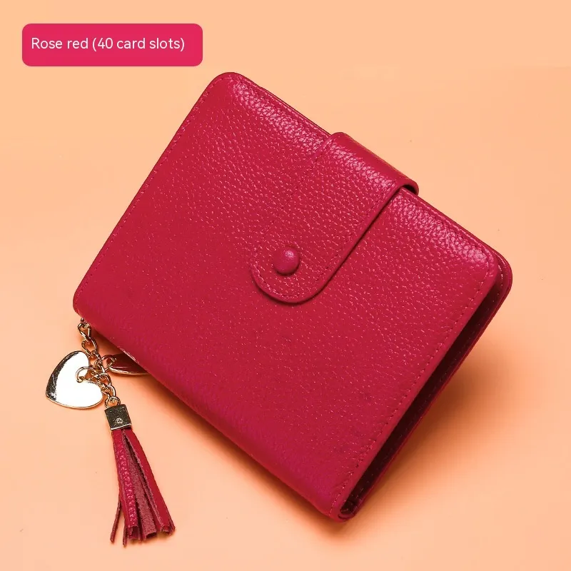 Korean Style Cowhide Card Holder – 40-Slot Tassel Snap Wallet