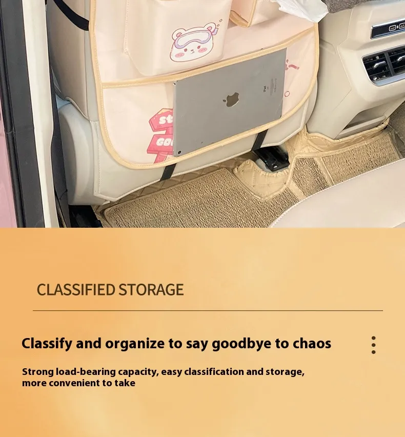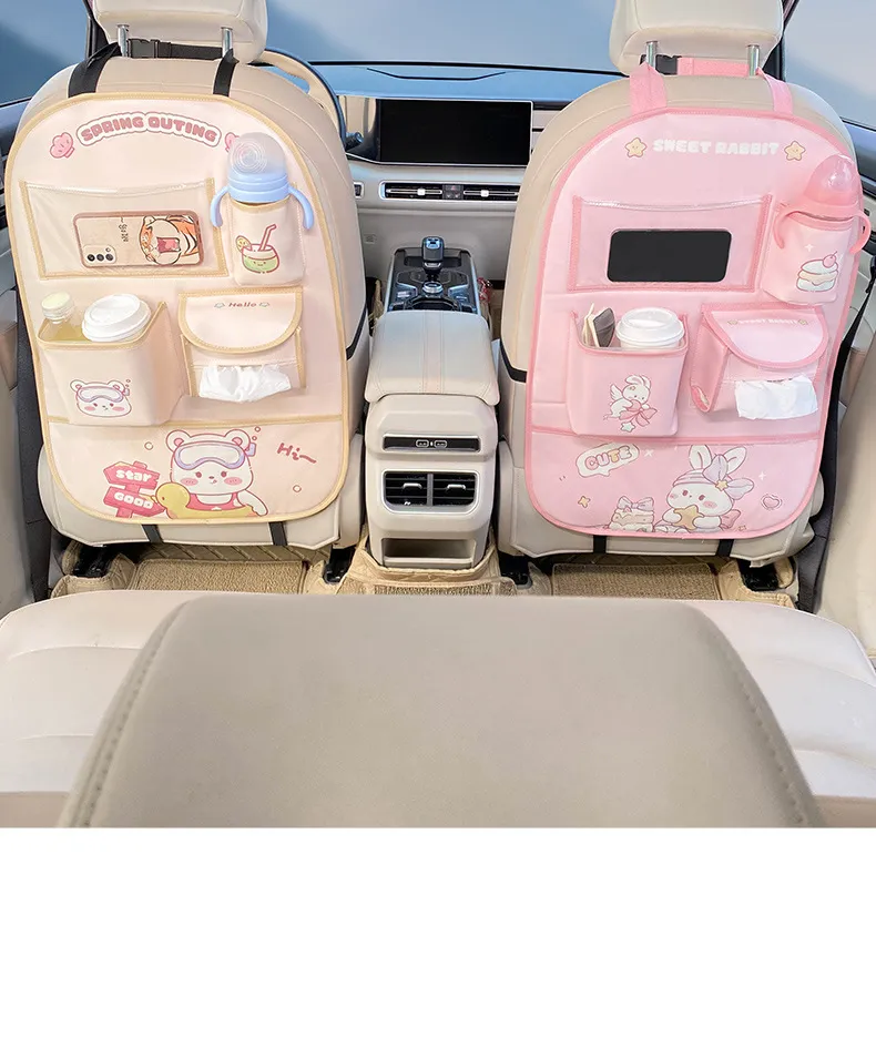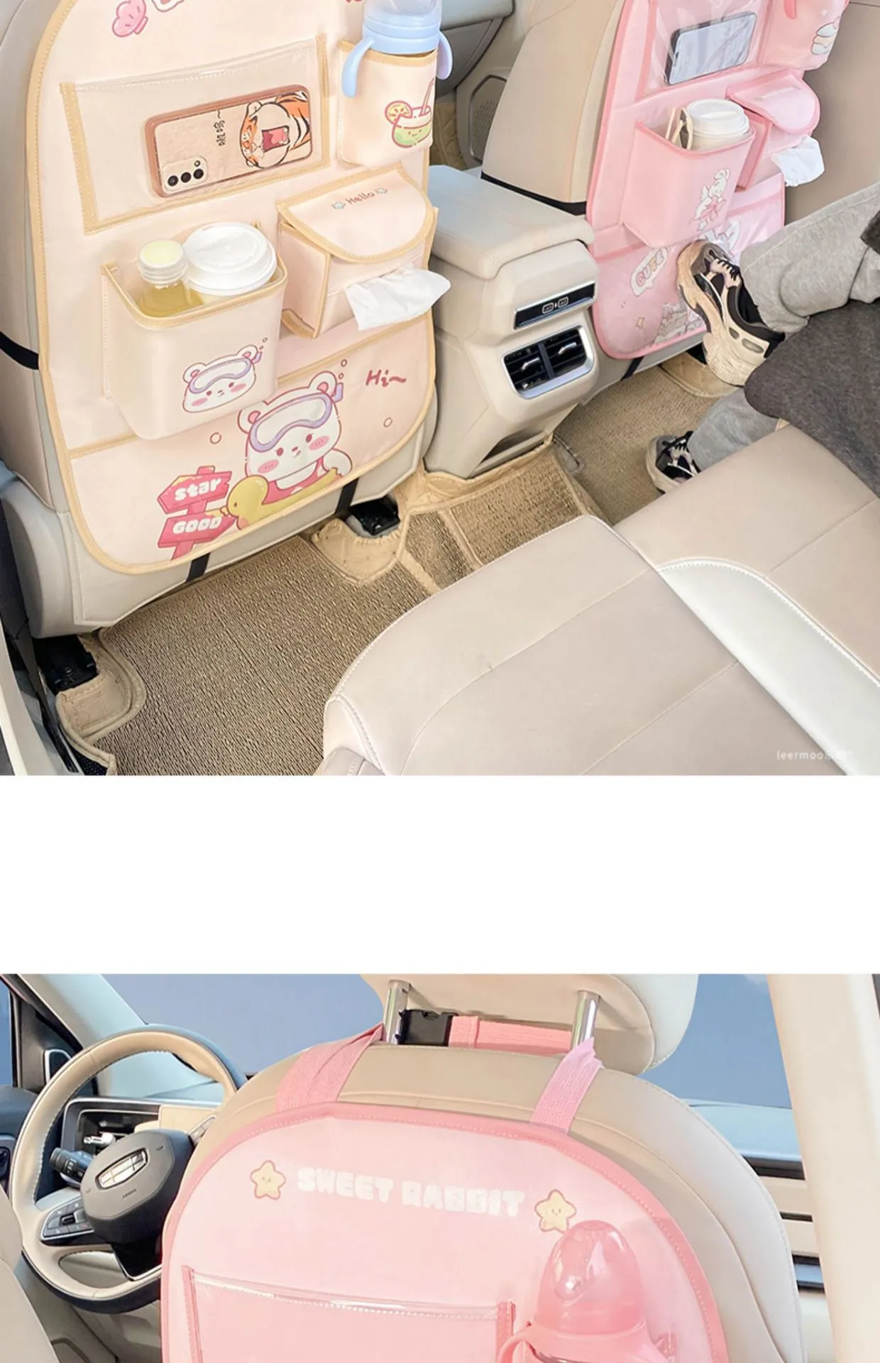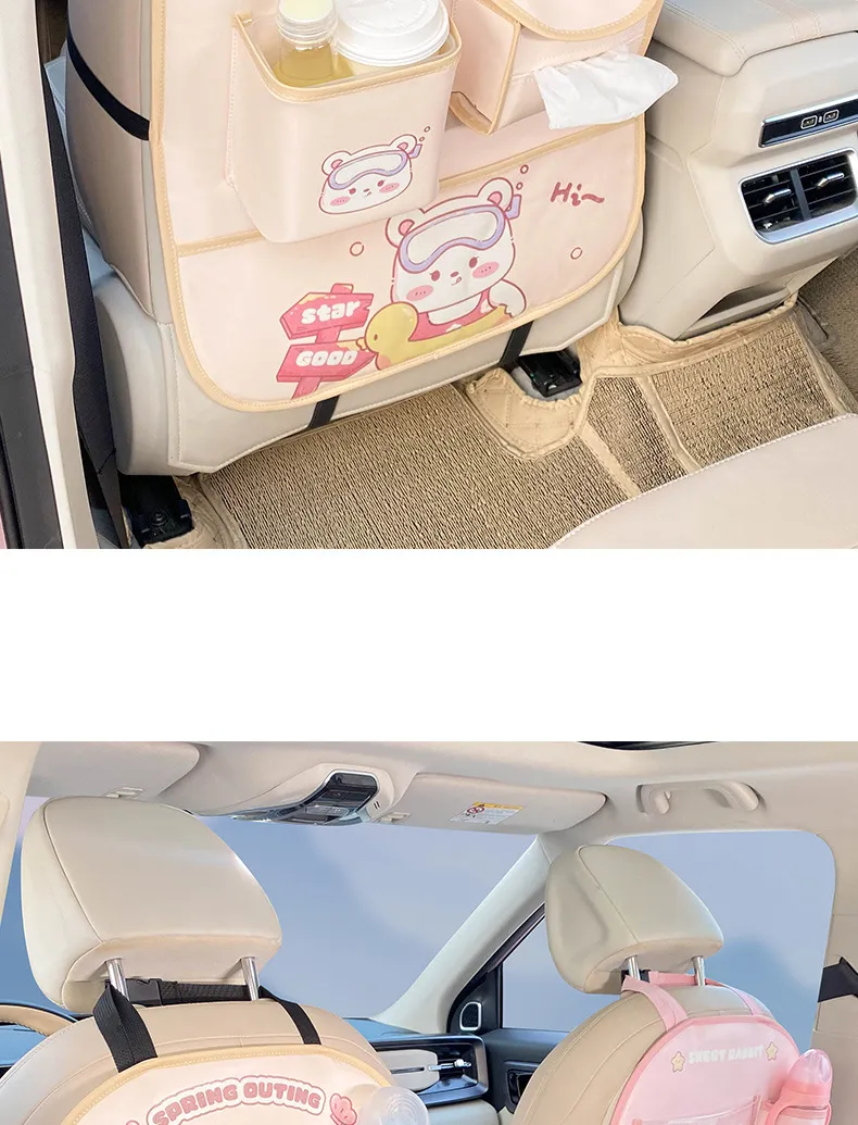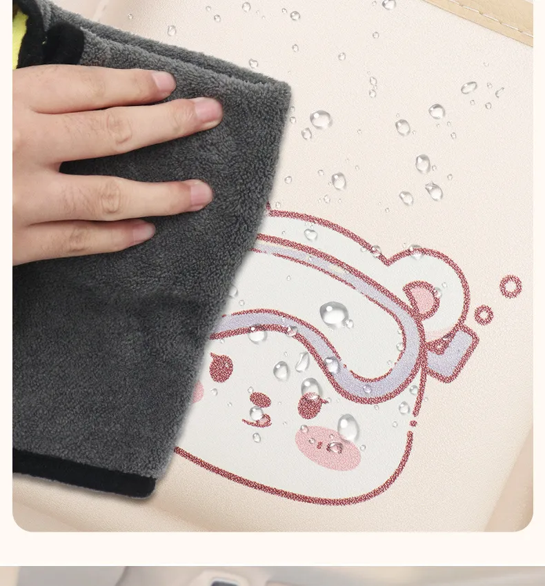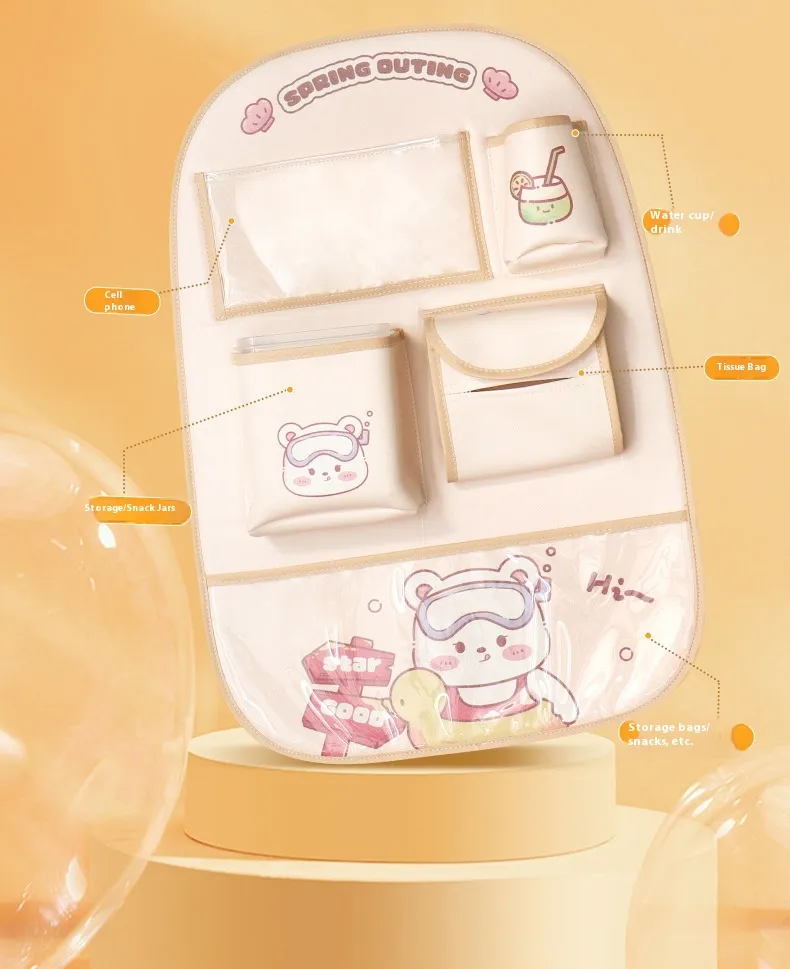 Crafted from high-quality leather, it is durable, waterproof, and easy to clean—just wipe with a damp cloth. The anti-kick design keeps your car interior tidy while built-in storage pockets hold toys, tissues, snacks, or small accessories. Choose from adorable designs like the Color Bear or Rabbit, making your backseat both functional and fun.