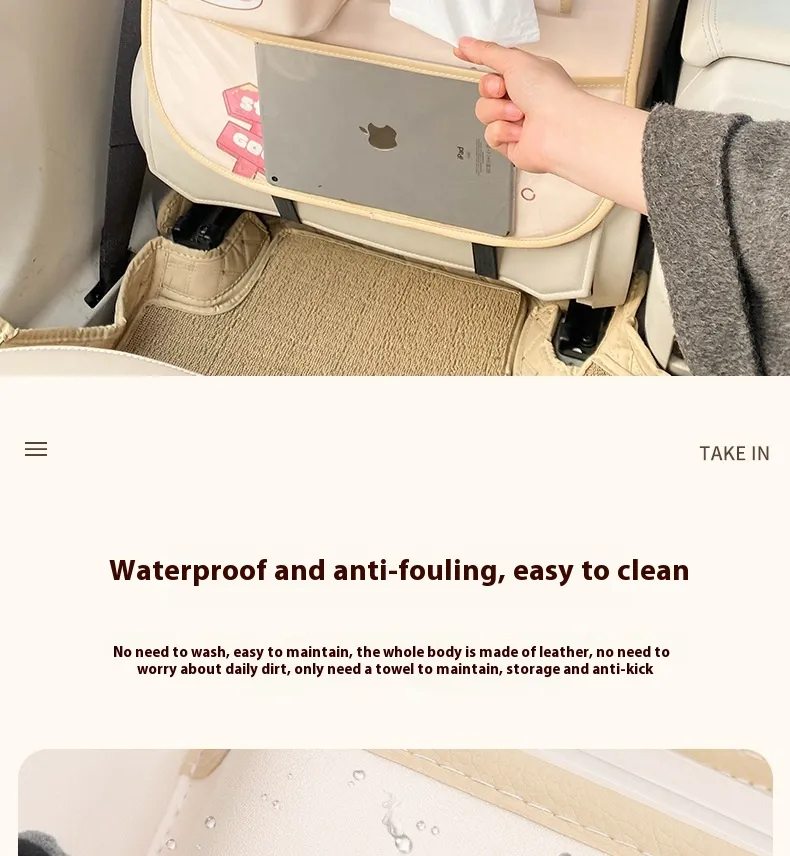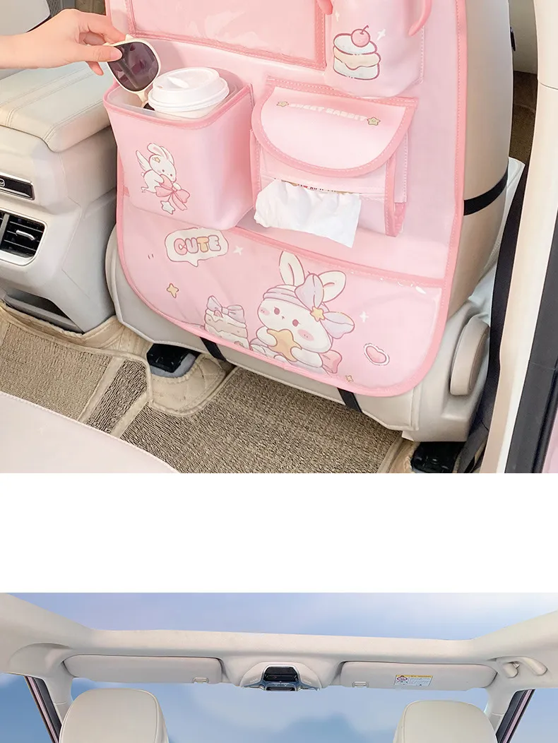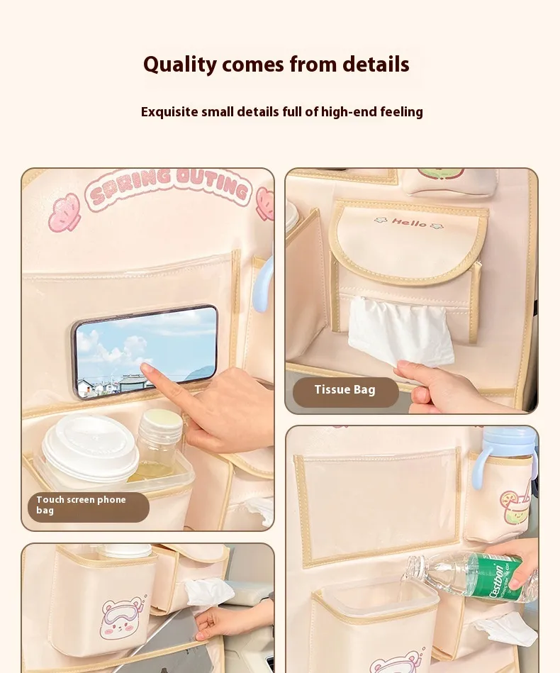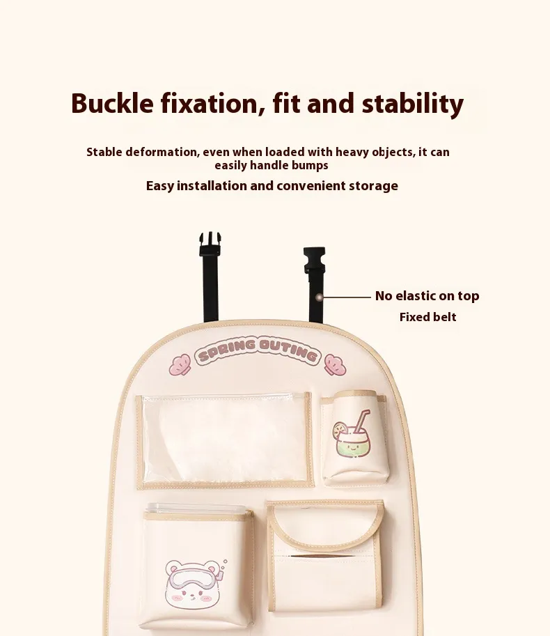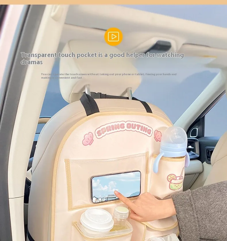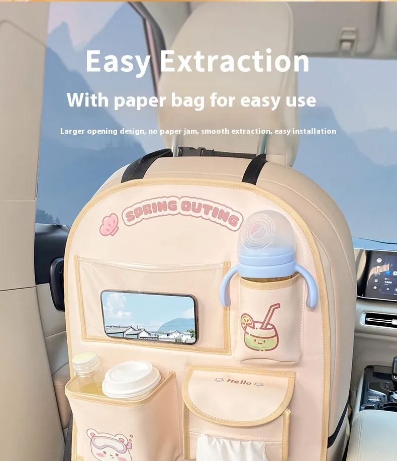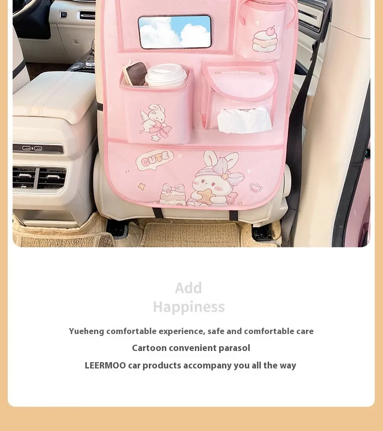 Crafted from high-quality leather, it is durable, waterproof, and easy to clean—just wipe with a damp cloth. The anti-kick design keeps your car interior tidy while built-in storage pockets hold toys, tissues, snacks, or small accessories. Choose from adorable designs like the Color Bear or Rabbit, making your backseat both functional and fun.