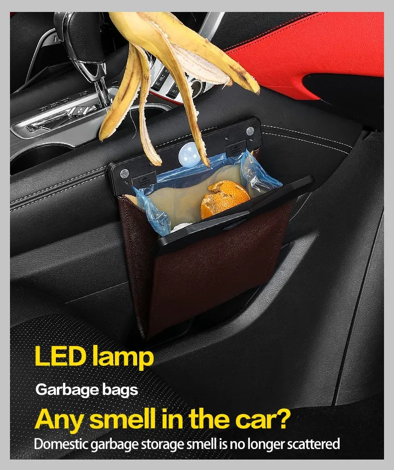 Keep your vehicle clean and clutter-free with this LED Car Trash Can Organizer, a perfect blend of function and modern design. Crafted from high-quality leather with color steel baking paint and ABS structure, this durable car dustbin adds a sleek and stylish touch to your car’s interior while serving as a compact storage solution.