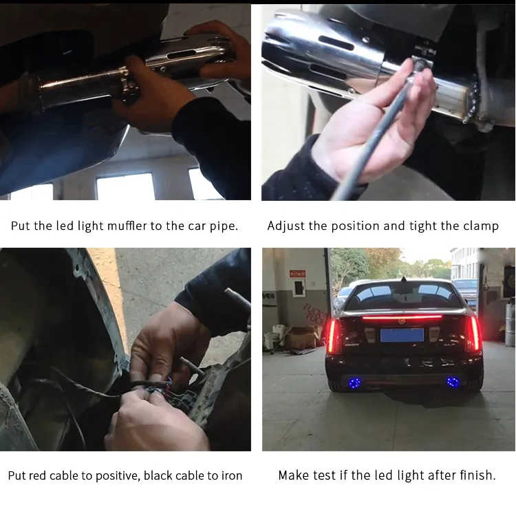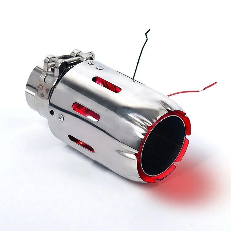 Crafted from high-quality stainless steel, it’s built to withstand high temperatures without warping or discoloring. The integrated LED lights illuminate under acceleration, simulating a glowing exhaust flame effect—perfect for night driving or car shows. The tail throat design also improves aesthetics without compromising durability.