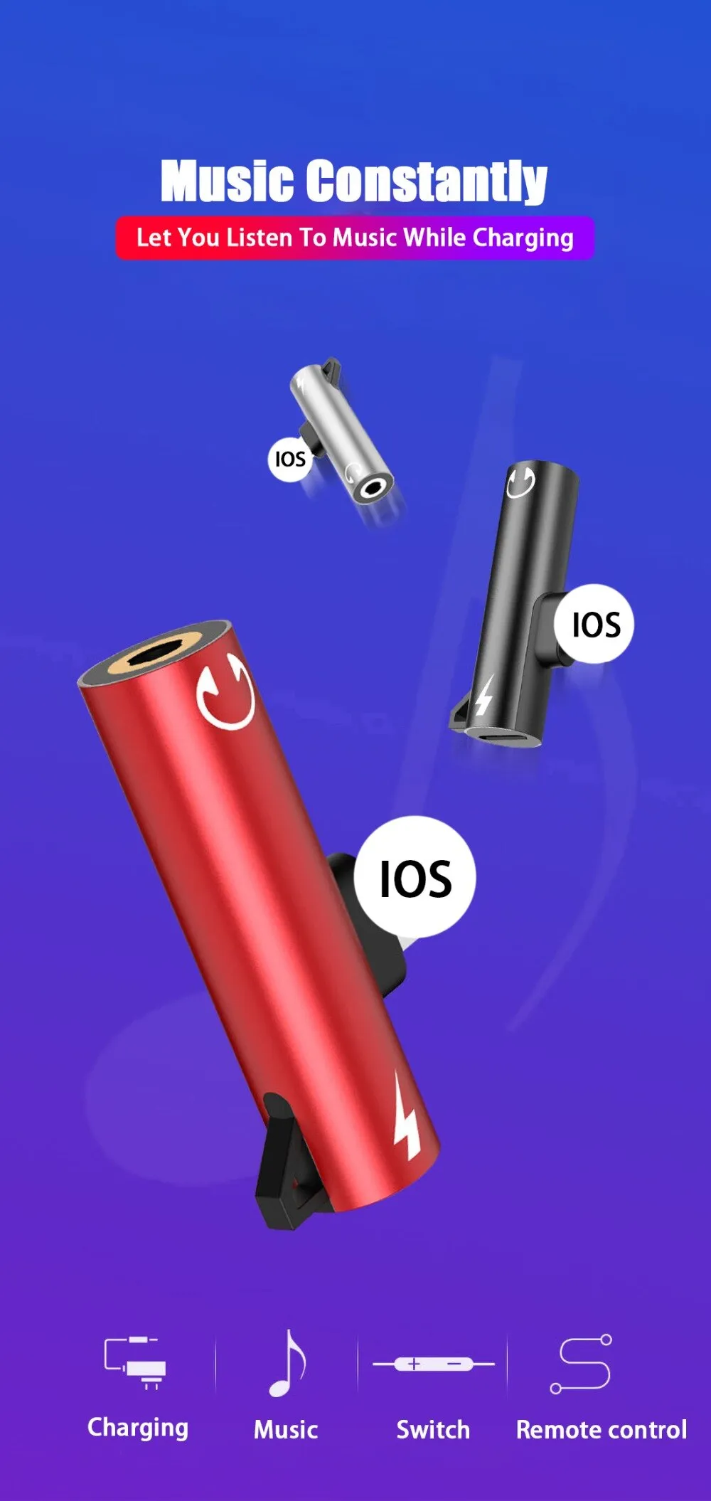 Available in elegant colors like gold, silver, rose gold, black, and big red, the adapter adds a stylish touch to your tech setup. Compact and portable, it's ideal for travel, office, or everyday use—making it an essential accessory for iPhone users seeking both function and flexibility.