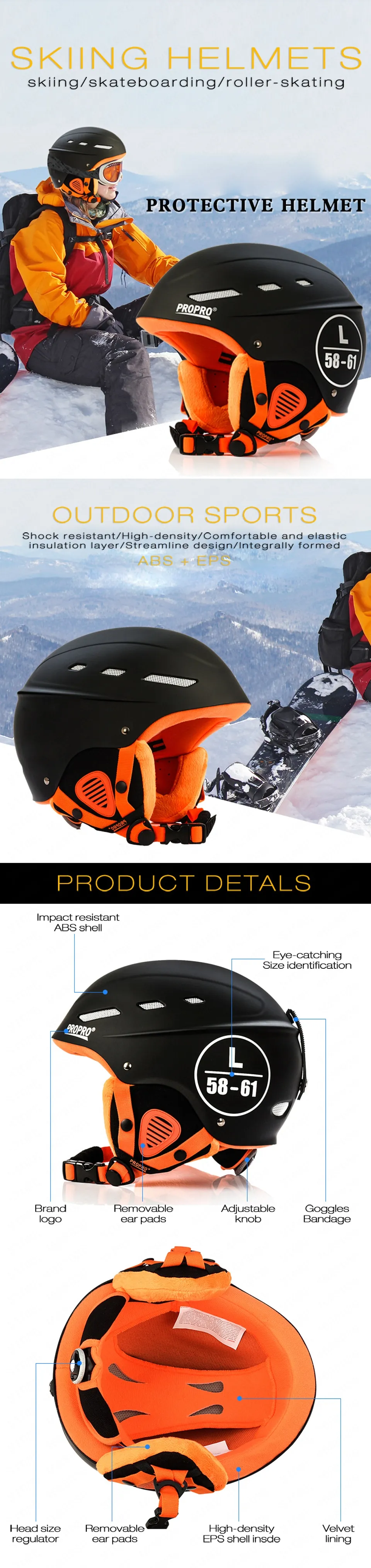 Stay safe and stylish on the slopes with this lightweight snow sports helmet, designed for superior protection and all-day comfort. Crafted with a durable ABS shell and EPS inner liner, it delivers excellent impact resistance while maintaining a comfortable fit. The CE-certified design ensures that every ride meets international safety standards, making it an ideal choice for skiing, snowboarding, and other winter sports.