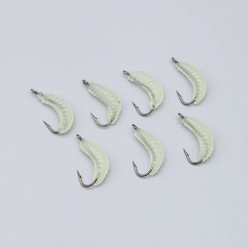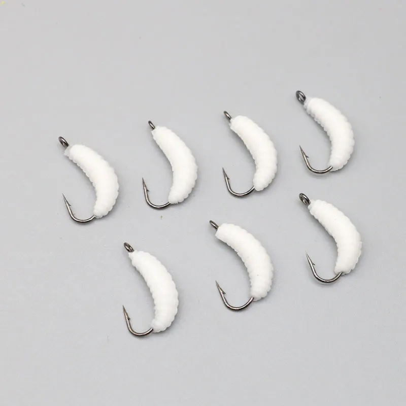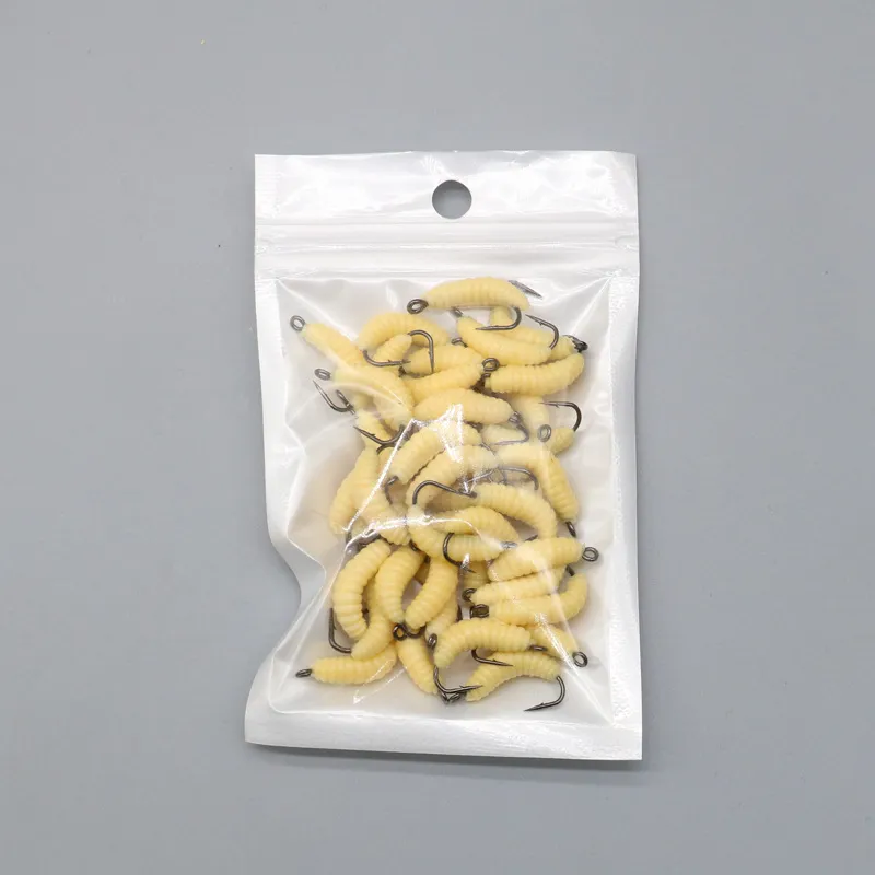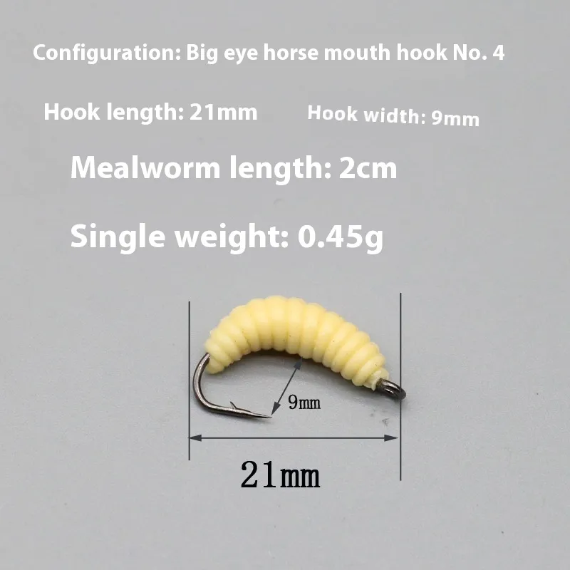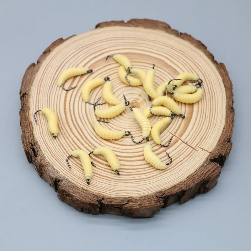 Lure With Hook Mealworm Suit – Soft Lifelike Mealworm Bait with Hooks for Freshwater and Saltwater Fishing (30 Pcs Bag)