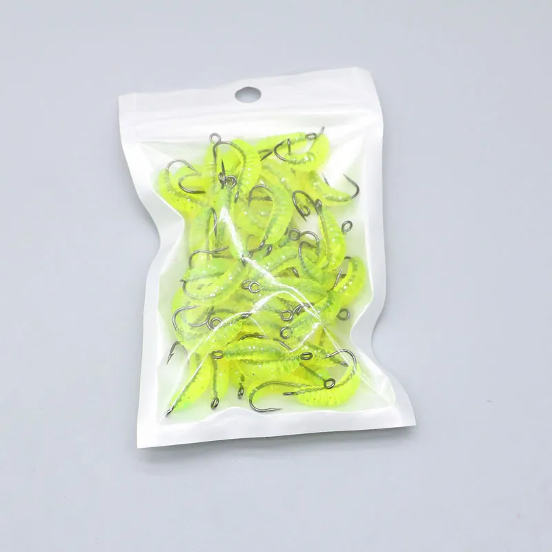 Enhance your fishing success with the Lure With Hook Mealworm Suit – Soft Lifelike Mealworm Bait with Hooks for Freshwater and Saltwater Fishing (30 Pcs Bag). Designed to imitate the natural look and movement of real mealworms, these lures are pre-rigged with sharp hooks for quick and easy use.