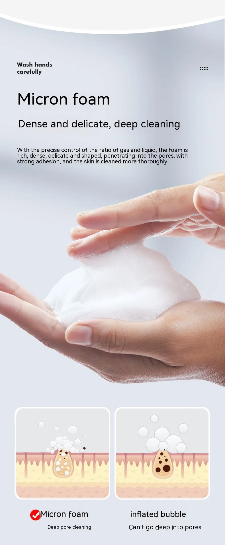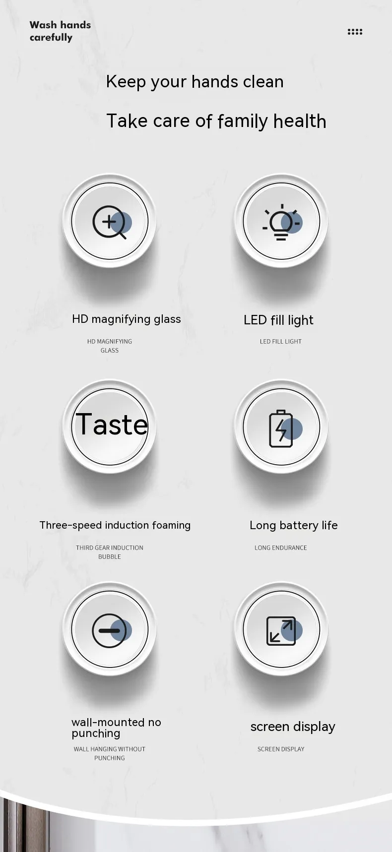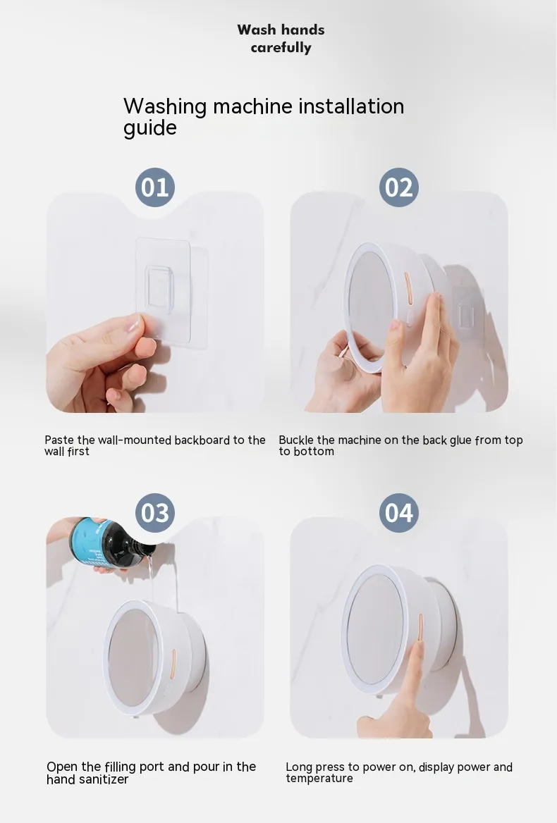 Integrated with a 48-fill LED digital tube display light source, the beauty mirror provides bright, natural lighting at 9000K, perfect for makeup application or phone video calls. Powered by a rechargeable 1500mAh battery via USB, the device combines practical soap dispensing with modern design and functionality.