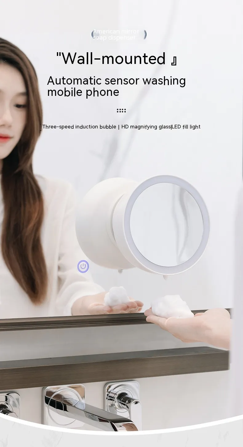 M1 Automatic Soap Dispenser with Beauty Mirror & Mobile Phone Holder – USB Powered Induction Soap Pump