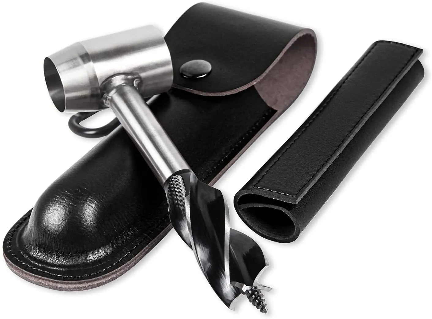 Crafted from durable alloy steel and protected in a premium genuine leather case made of first-layer cowhide, this auger bit offers strength, precision, and reliability. The handheld design makes it perfect for use in greenwood or corkwood projects, while its compact size ensures it fits neatly into your backpack or gear pouch. Available in classic black and brown leather casing, it balances style with practicality.