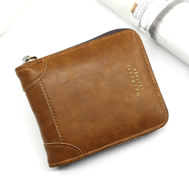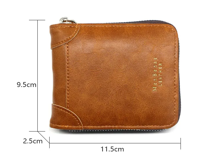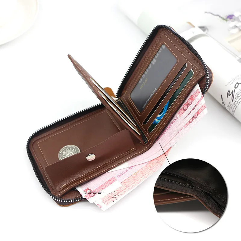 Men’s PU Leather Short Wallet – Casual Zipper Coin Purse