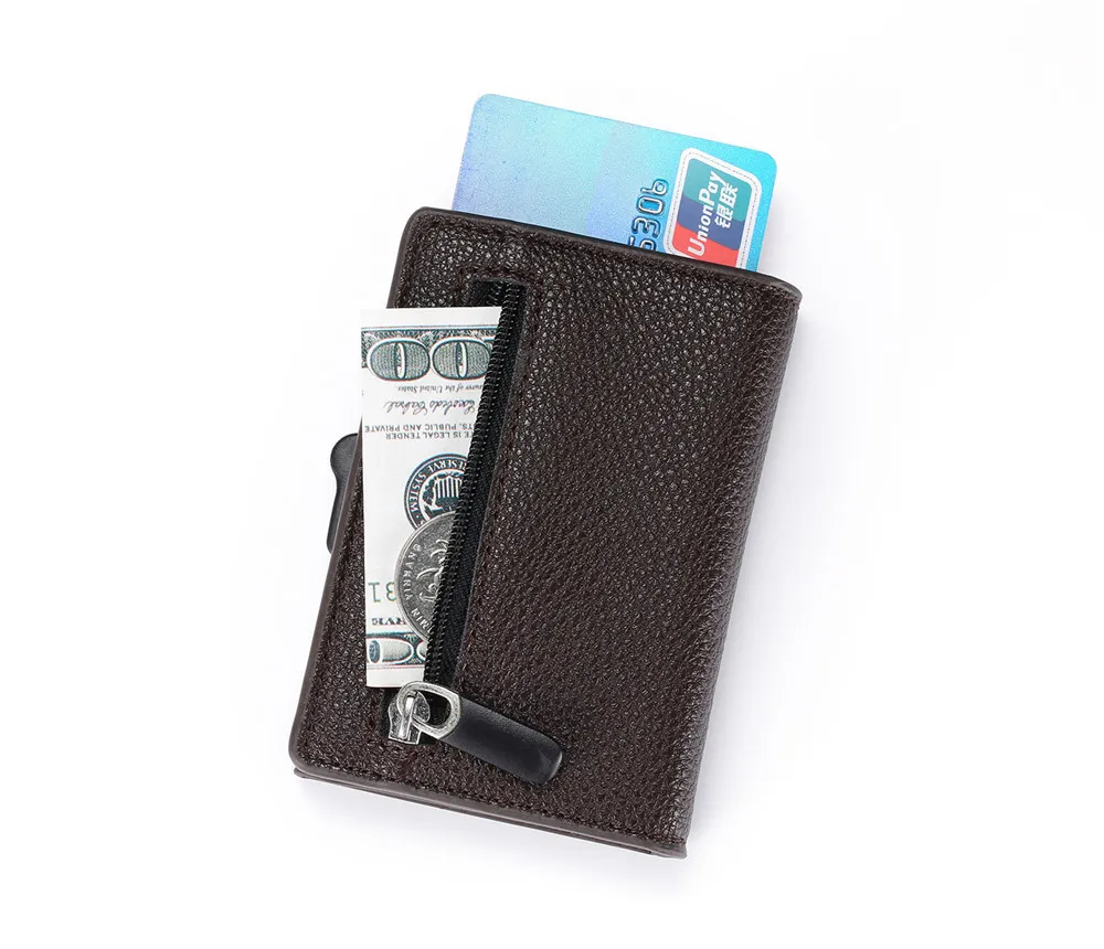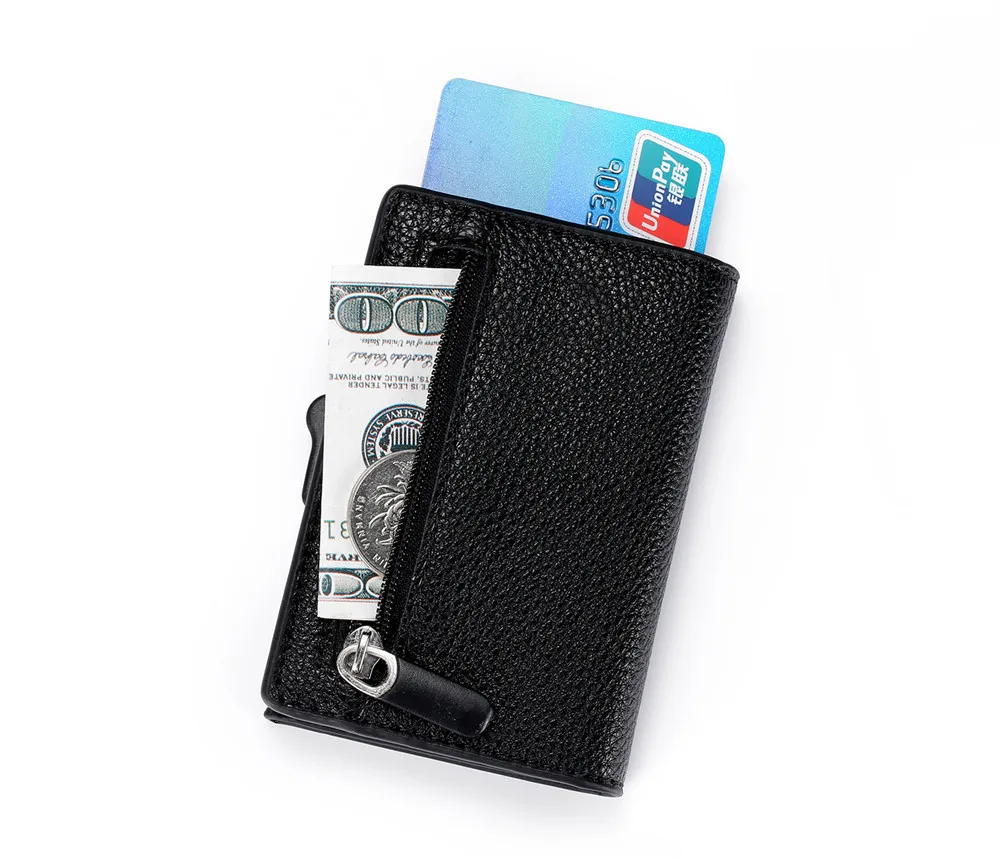Metal Card Holder with Zipper – Auto Eject Credit Card Case