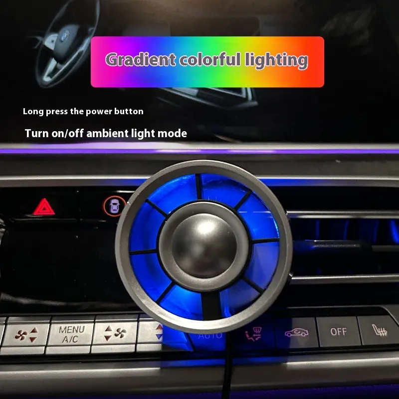 Portable and user-friendly, this fan is powered via USB, making it compatible with cars, trucks, and other USB power sources. Whether for driving, traveling, or gifting, the Mini Car Fan with Colorful Lights delivers cooling comfort and stylish functionality in one small package.