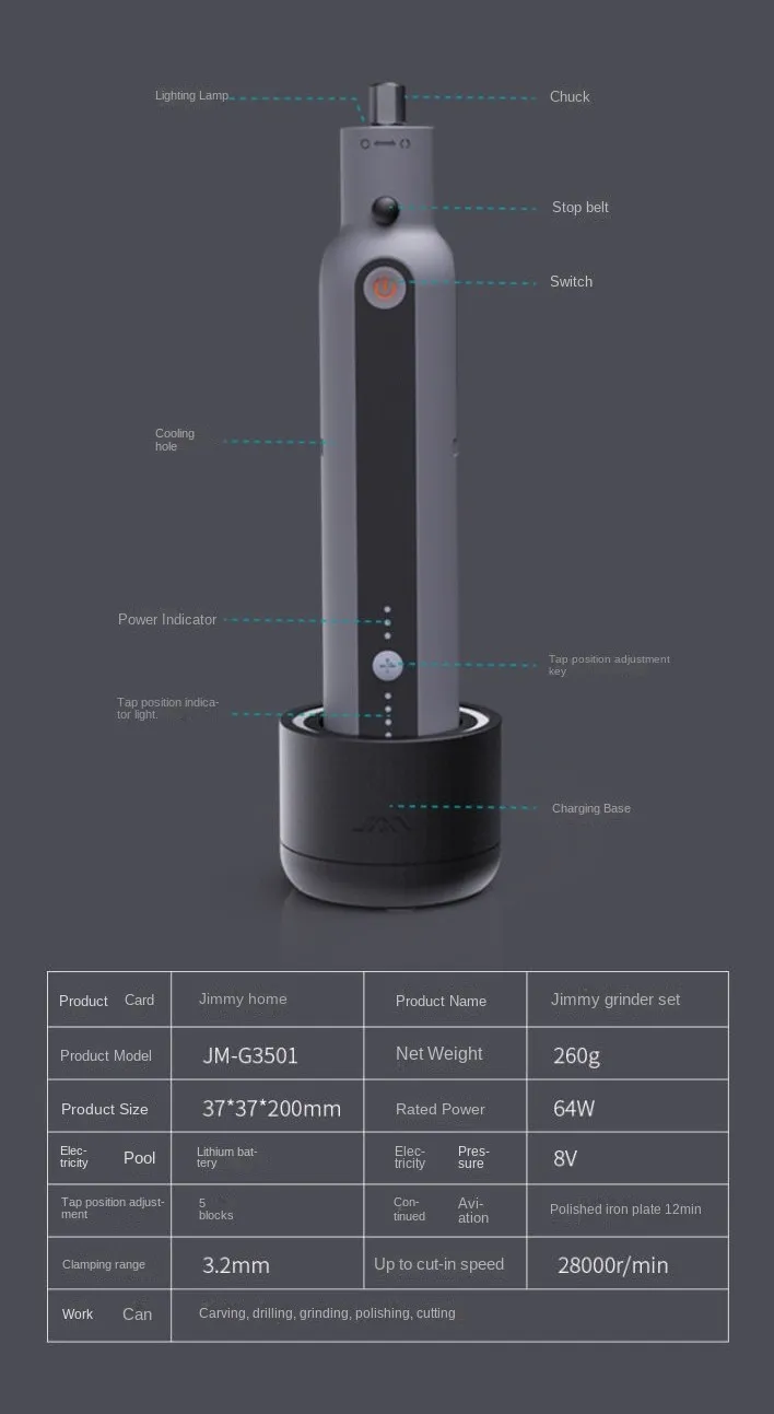 With a maximum speed of 28,000 RPM and adjustable 5-speed gear control, it provides excellent flexibility for a variety of applications. From polishing iron plates to fine detailing on crafts, this versatile grinder ensures efficiency and smooth performance. The ergonomic design makes it easy to handle while minimizing fatigue during extended use.