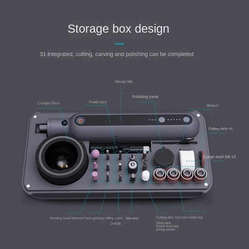 Enhance your workshop with this Mini Polishing & Cutting Electric Grinding Machine Set, designed for carving, drilling, cutting, and polishing with precision. Powered by a reliable 64W motor and 8V lithium battery, this compact yet powerful tool is perfect for DIY enthusiasts and professionals alike.