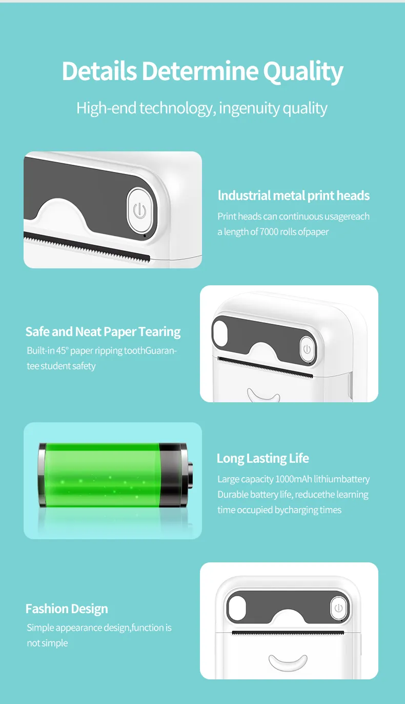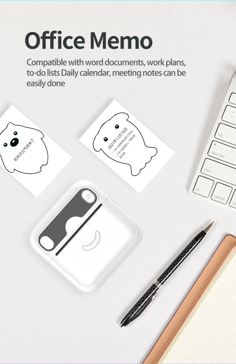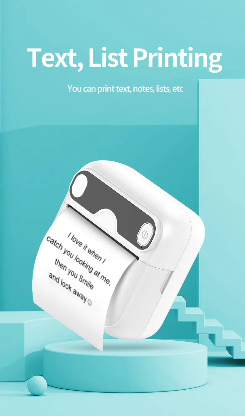 Charging is quick and simple with a 5V micro USB interface, and the built-in battery ensures long-lasting performance throughout the day. Whether you're organizing homework, printing memos, or labeling household items, this fashionable portable printer is a smart tool for productivity and creativity on the move.
