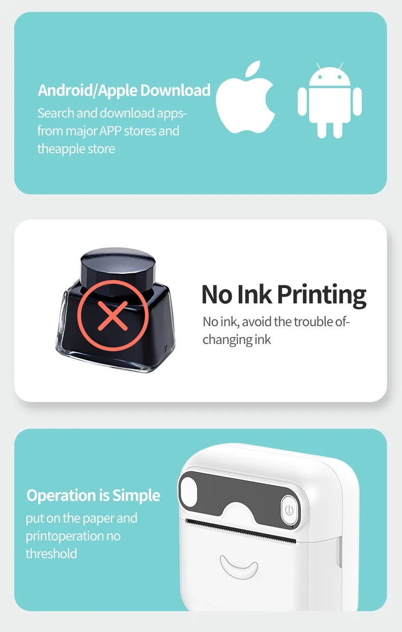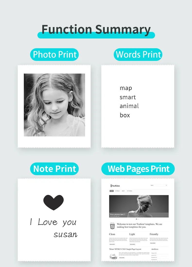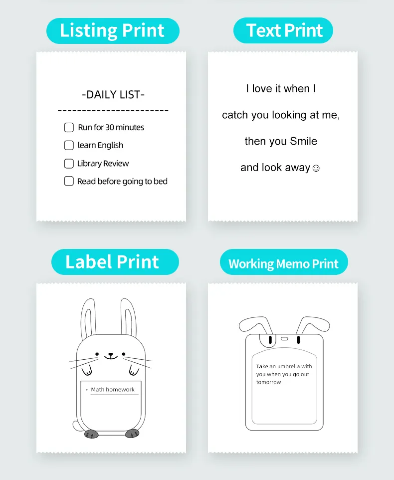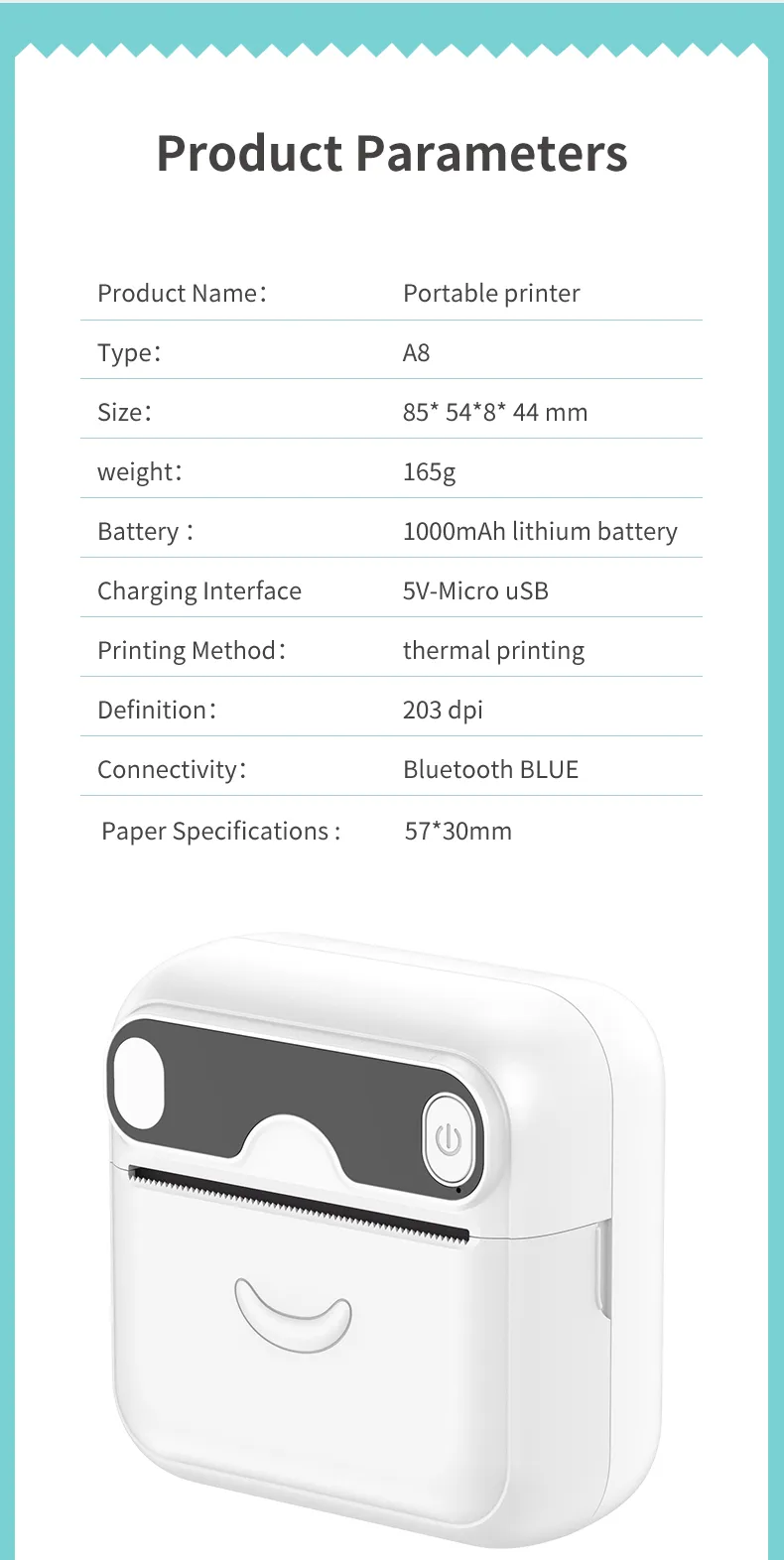 Charging is quick and simple with a 5V micro USB interface, and the built-in battery ensures long-lasting performance throughout the day. Whether you're organizing homework, printing memos, or labeling household items, this fashionable portable printer is a smart tool for productivity and creativity on the move.