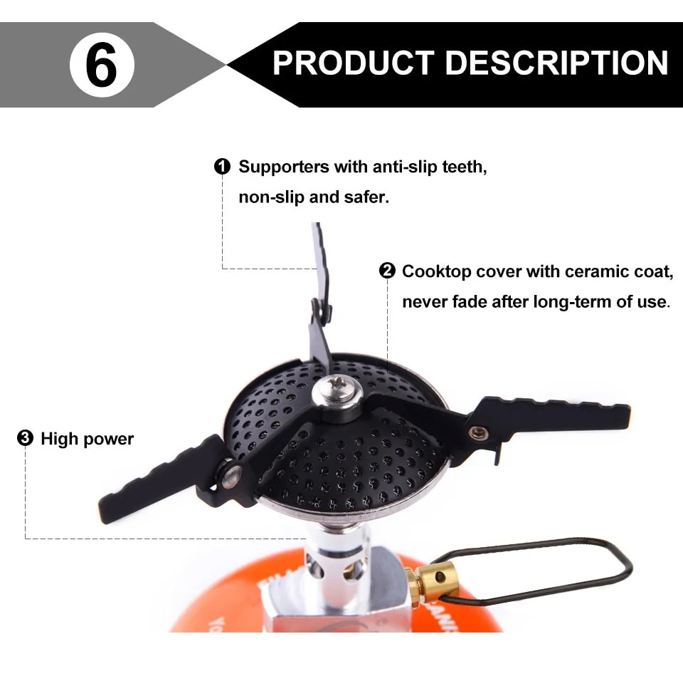 Enjoy efficient outdoor cooking with this Mini Camping Stove, a lightweight yet powerful windproof gas burner designed for all your outdoor adventures. Weighing only 50g, this ultra-compact stove fits in the palm of your hand but supports up to 4kg or 3.5L—ideal for hiking, trekking, camping, or backpacking.