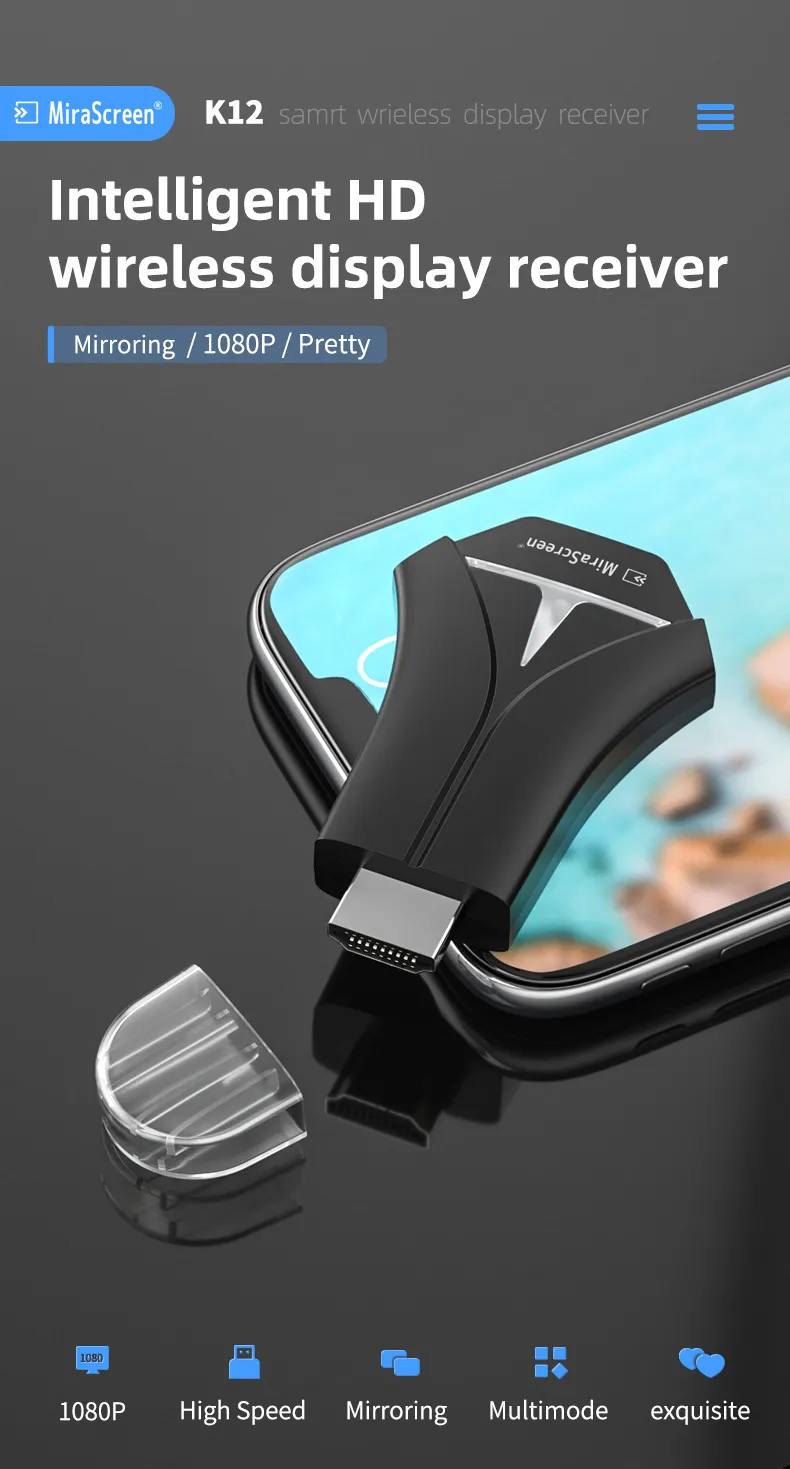Compact and easy to carry, this Linux-based streaming dongle is ideal for home entertainment, classrooms, or business meetings. Enjoy fast connectivity, smooth playback, and no lag—all without the hassle of cables or complicated setup. Turn any HDMI device into a wireless smart display with the Mirascreen K12.