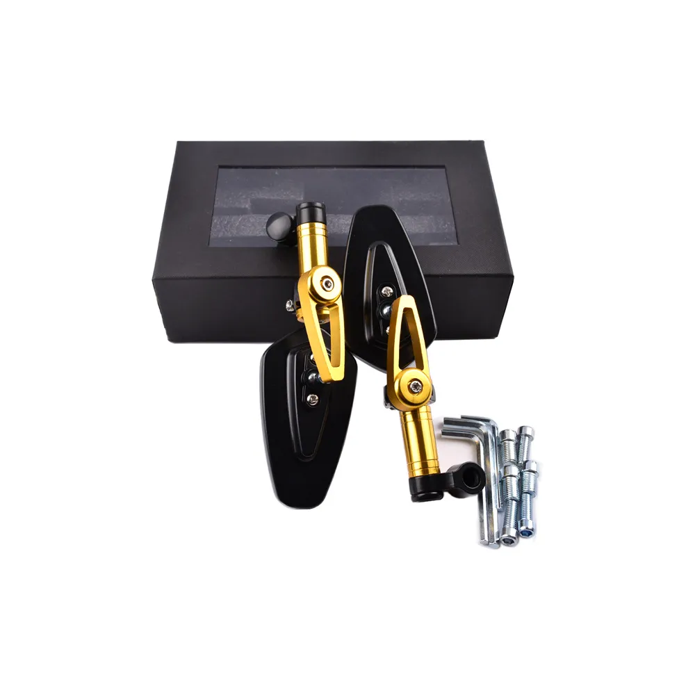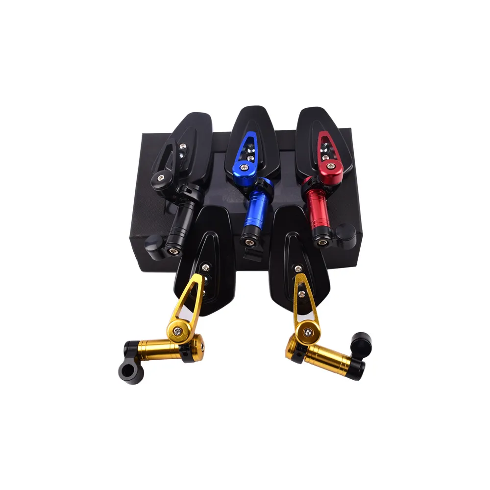 Built from CNC-machined aluminum alloy, the mounts offer exceptional durability, corrosion resistance, and a stylish anodized finish. The mirrors come in multiple color options—black, blue, gold, and red—allowing you to match your bike’s custom setup perfectly.