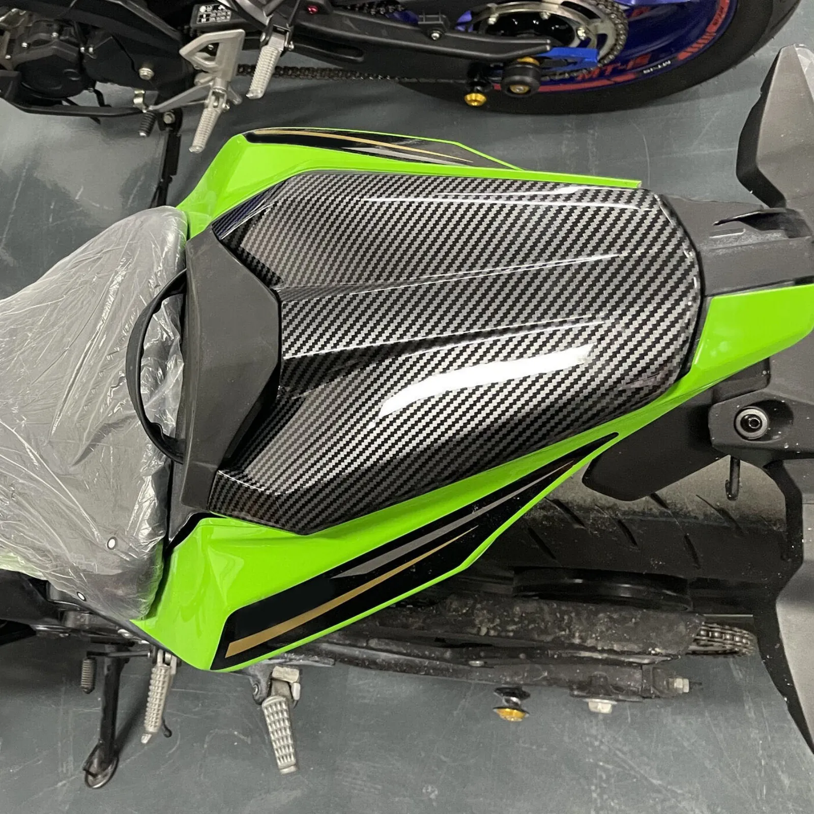 Made from high-quality ABS plastic, it is waterproof, durable, and suitable for all seasons. Available in five striking finishes — black, green, red, blue, and charcoal (water transfer) — this cover protects your seat from water, dust, and UV damage while enhancing your motorcycle’s aerodynamic design.