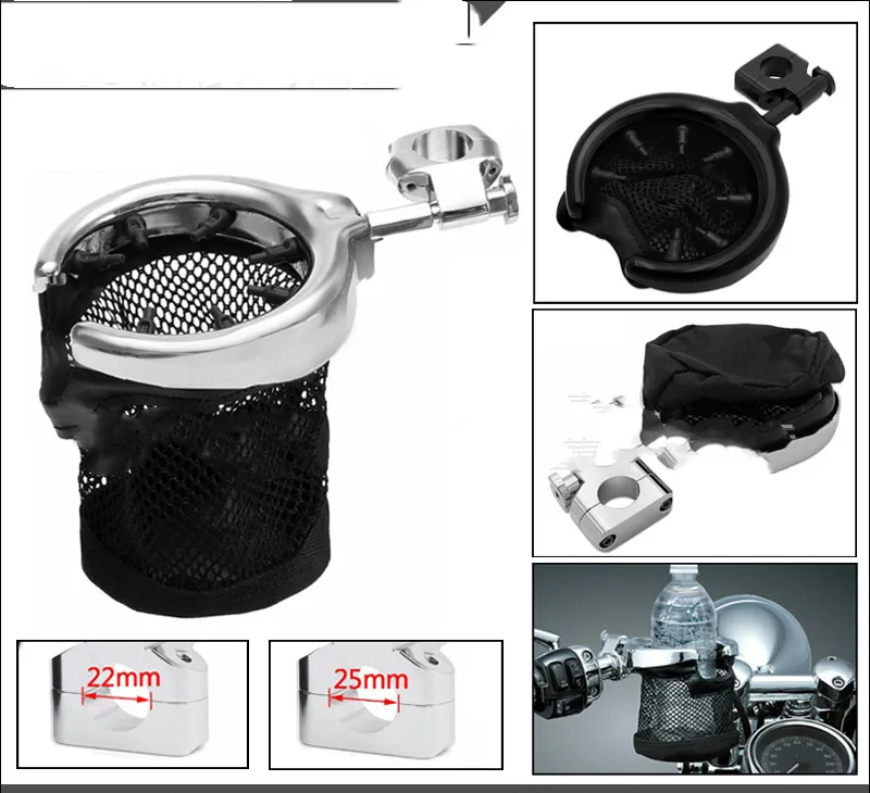 Keep your drink close at hand while riding with this motorcycle mesh bottle holder, designed for both functionality and style. Its universal fit makes it perfect for most cruiser, touring, and street bike handlebars measuring 22mm or 25mm in diameter.