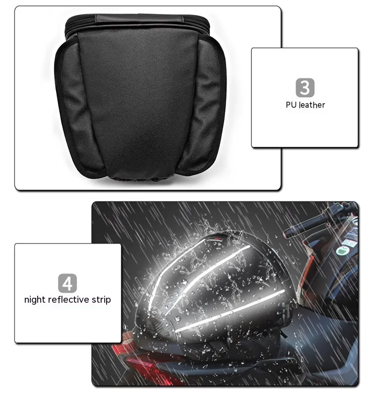 Crafted from premium PU leather and reinforced polyester, this bag offers superior durability and light water resistance, keeping your belongings protected from light rain and splashes. The reflective line detailing enhances visibility during night rides, ensuring a safer journey wherever you go.