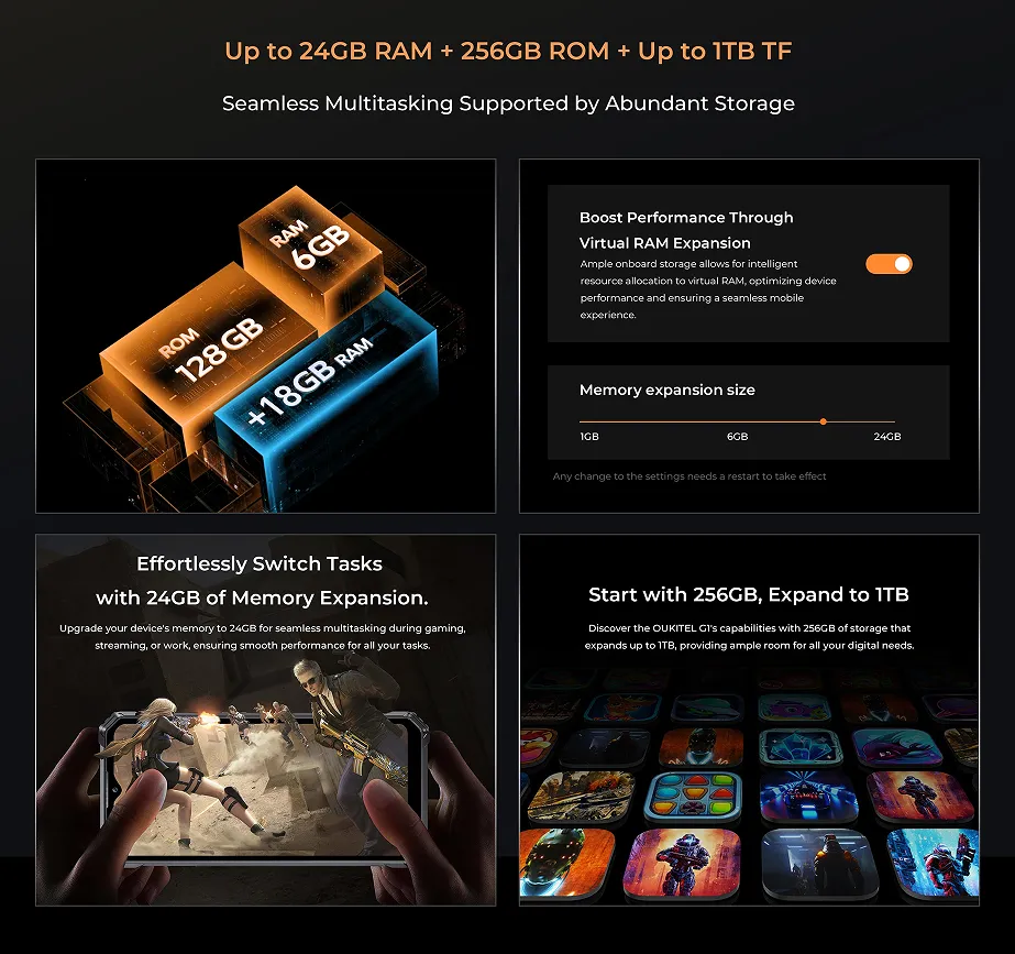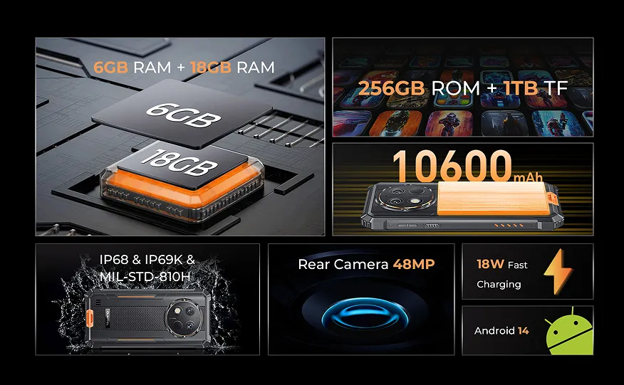 Oukitel G1 Rugged Phone β 24GB+256GB, 10600mAh, Android 14, IP68