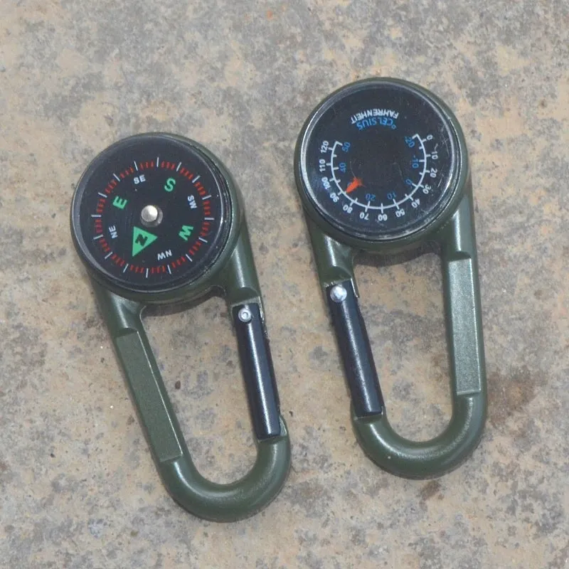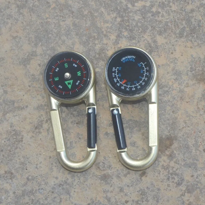 Outdoor Camping Double-Sided Climbing Carabiner with Thermometer – Zinc Alloy, Liquid Compass & Temperature Sensor