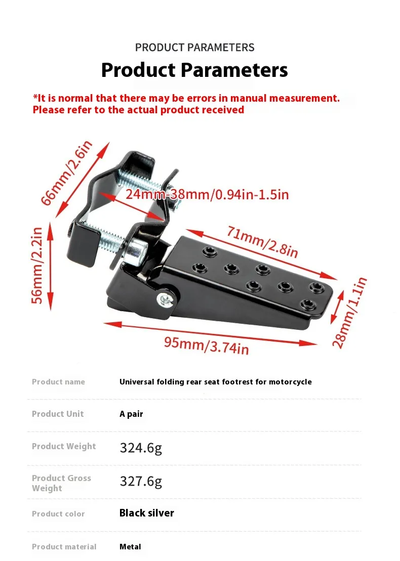 - Folding Function: Space-saving and convenient for modified or performance motorcycles.