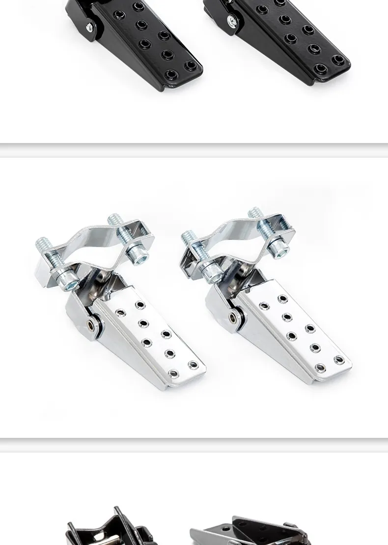 The foldable design allows for easy storage and flexibility, perfect for modified, sport, or off-road motorcycles. Available in black and silver finishes, these pedals not only boost functionality but also add a sleek, modern look to your bike.